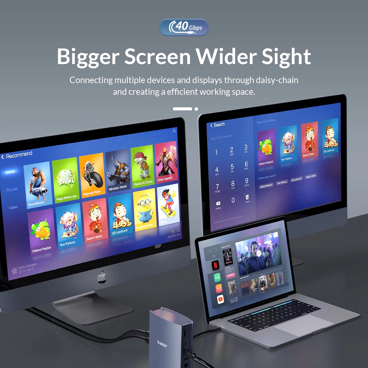 Connecting multiple devices and displays through daisy-chain and creating a efficient working space.
