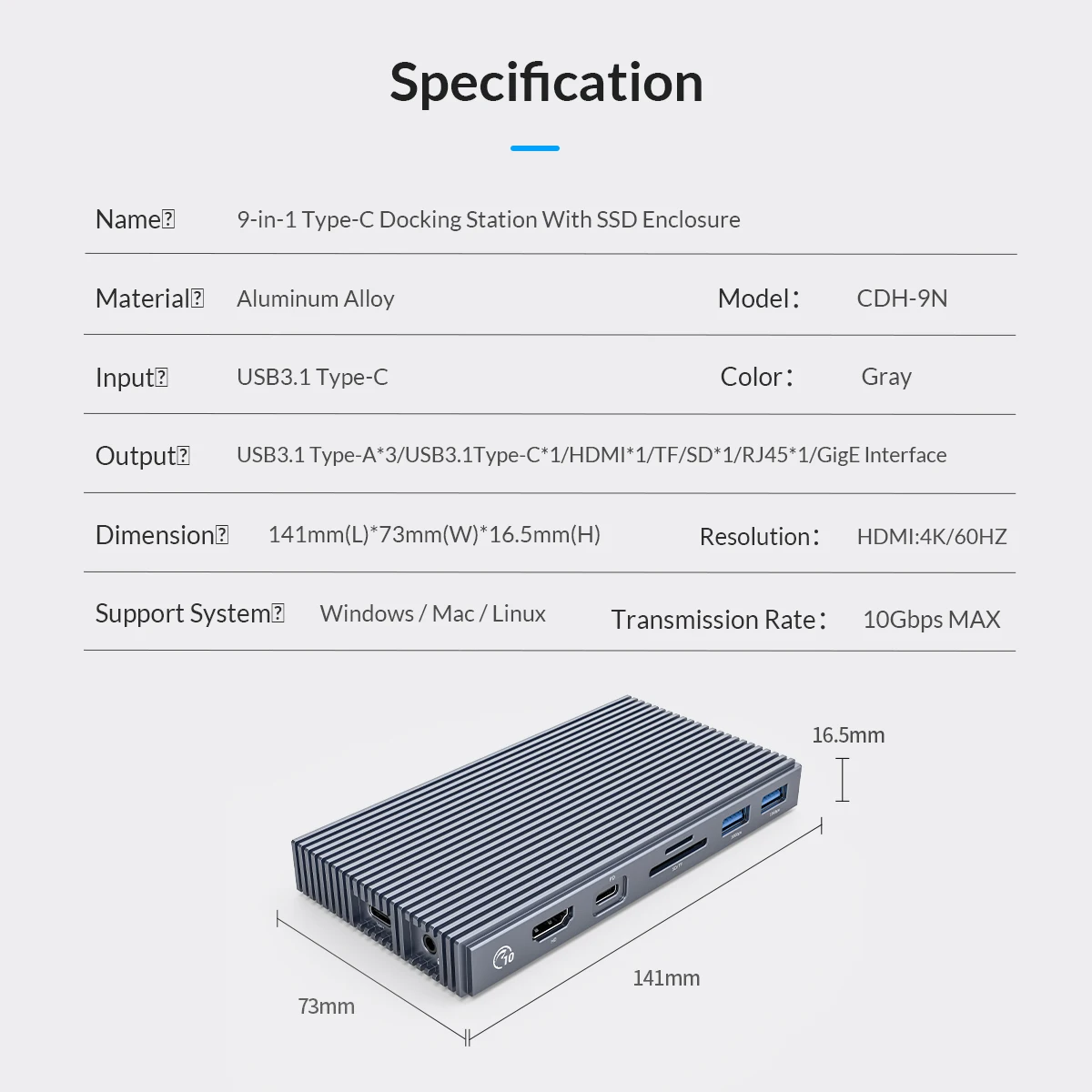 9-in-1 Type-C Docking Station With SSD Enclosure