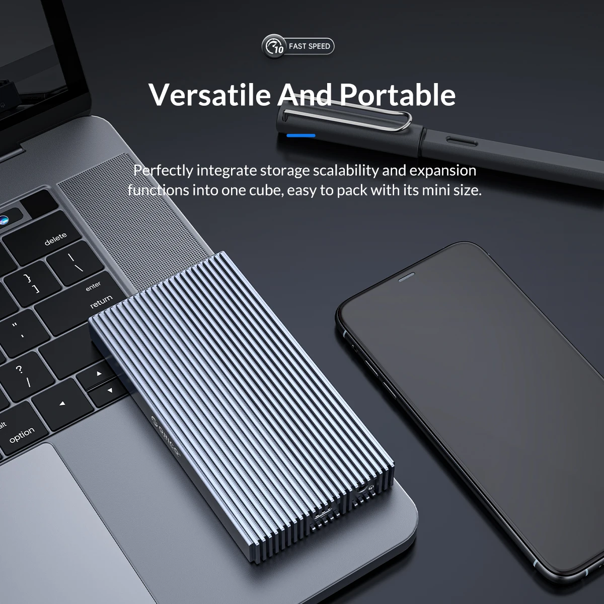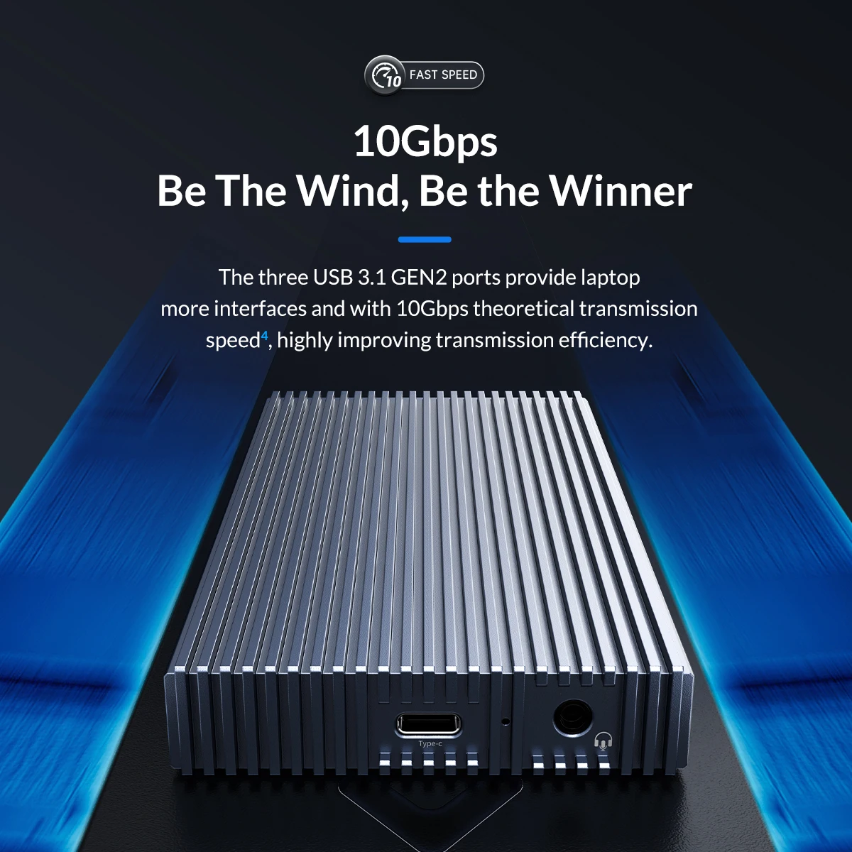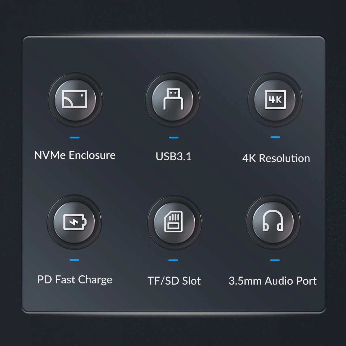 NVMe Enclosure, USB 3.1 10 Gbps, 4K Resolution, PD Fast Charge, TF/ SD Slot, 3.5 mm Audio port