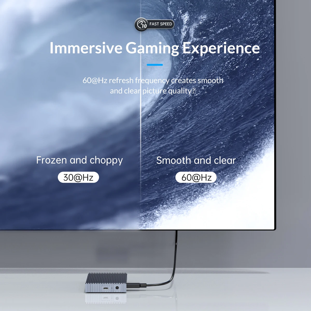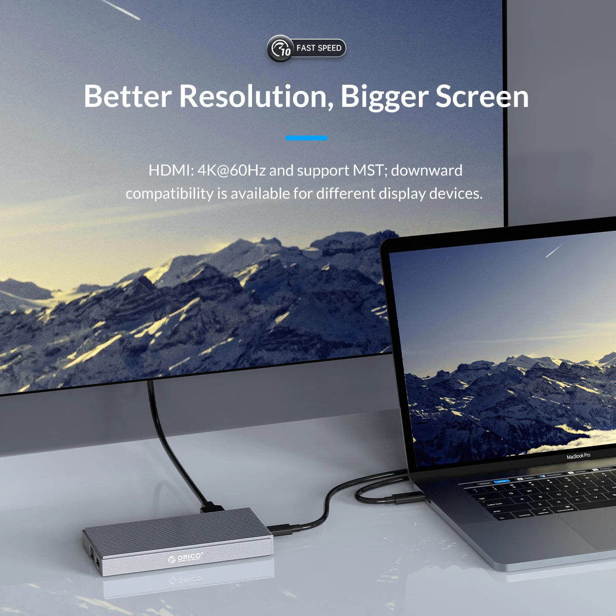 HDMI-Port: 4K@60Hz and support MST; downward compatibility is available for different display devices. Backward-compatible resolution: 2K@30Hz/60Hz, 1080P @30Hz/60Hz . (4K resolution only achieves when display devices support 4K resolution or the picture resolution is 4K; only Windows OS support MST.)