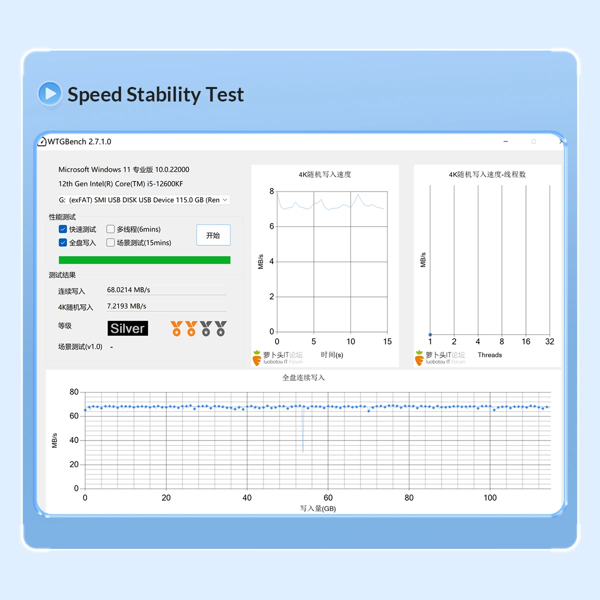 Orico USB3.2 Gen1 Flash Drive Read 60GB file in the test environment of ORICO Laboratory, Transmission speed is stable.