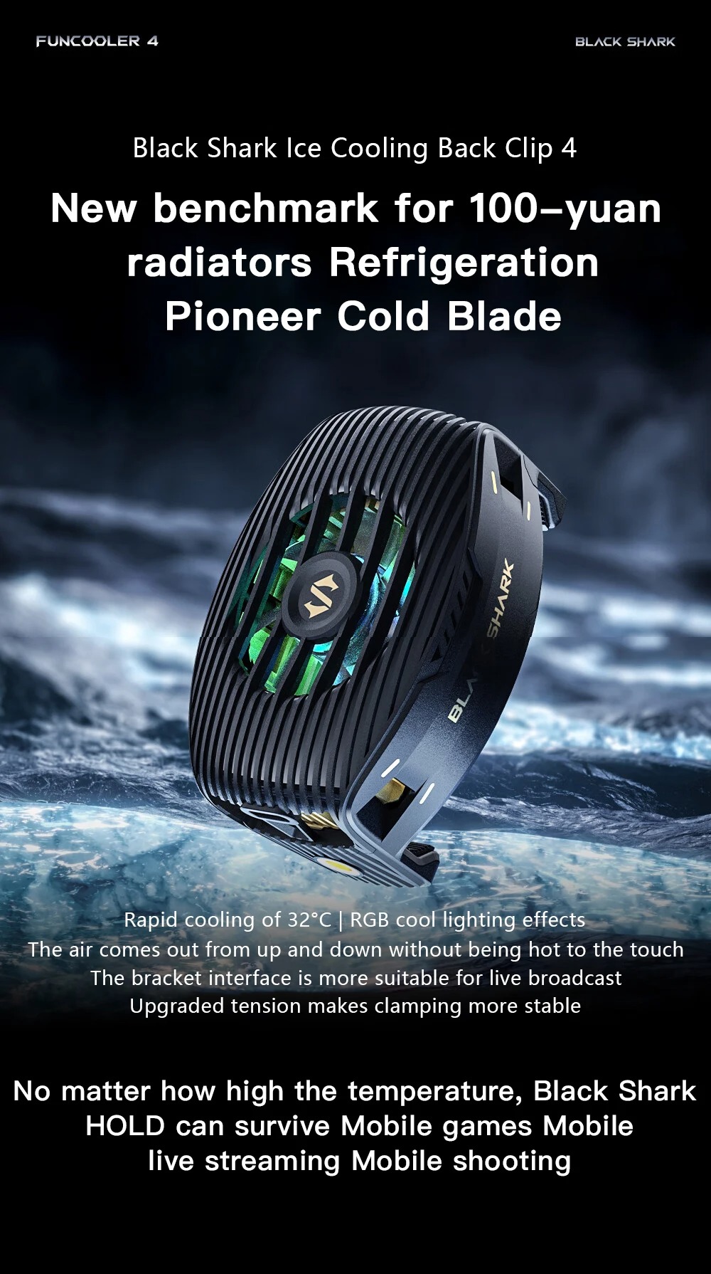 Original Black Shark Cooler 4 15W Fast Phone Cooler For iphone 15/ROG 7/Nubia Redmagic 9s Pro/Xiaomi FunCooler