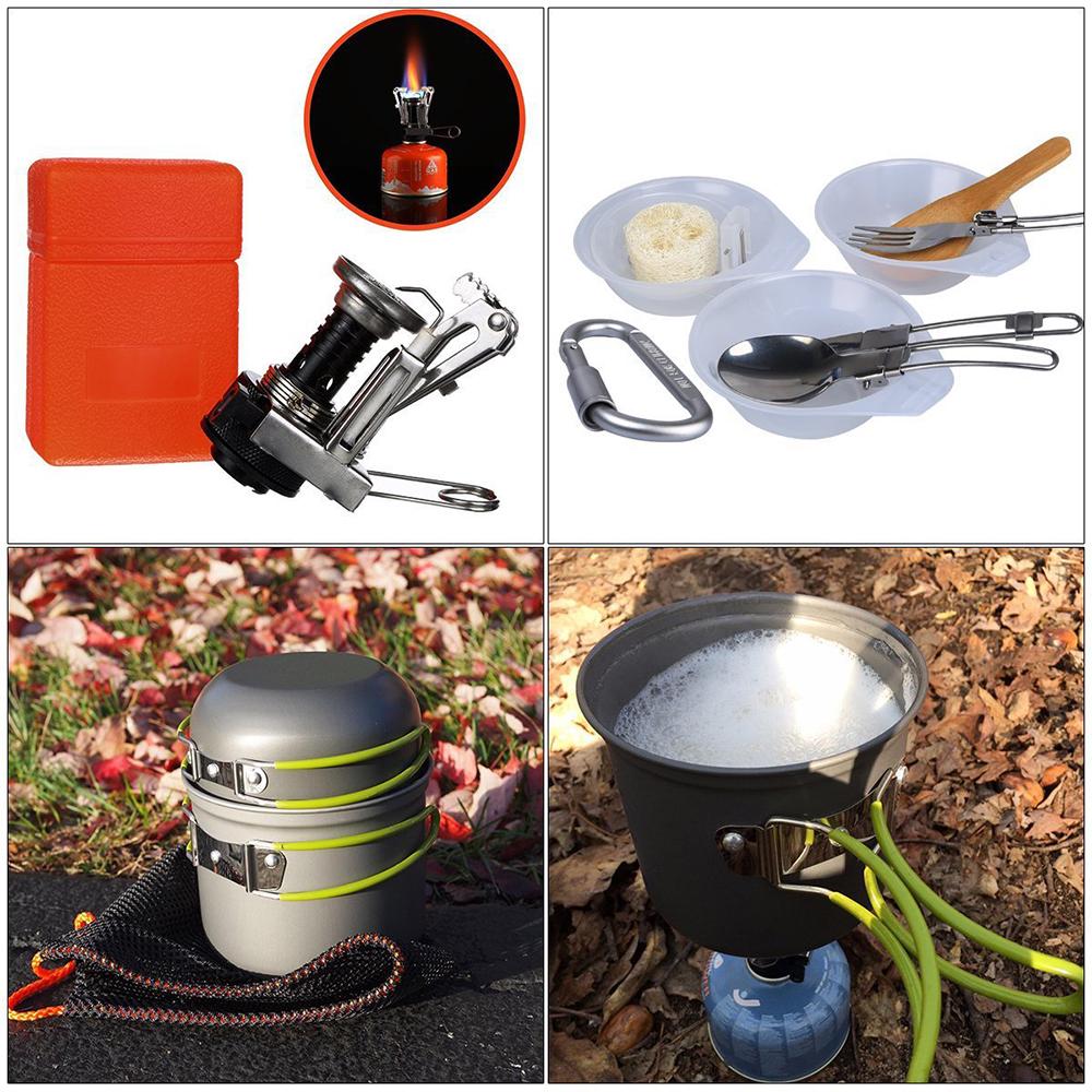 Outdoor Portable Camping Pot 1-2 People Picnic Cooker DS-101 Cook Set Removable Pot Cutlery Cooker Tank Mount Ultralight Cookware For Backpacking Hiking
