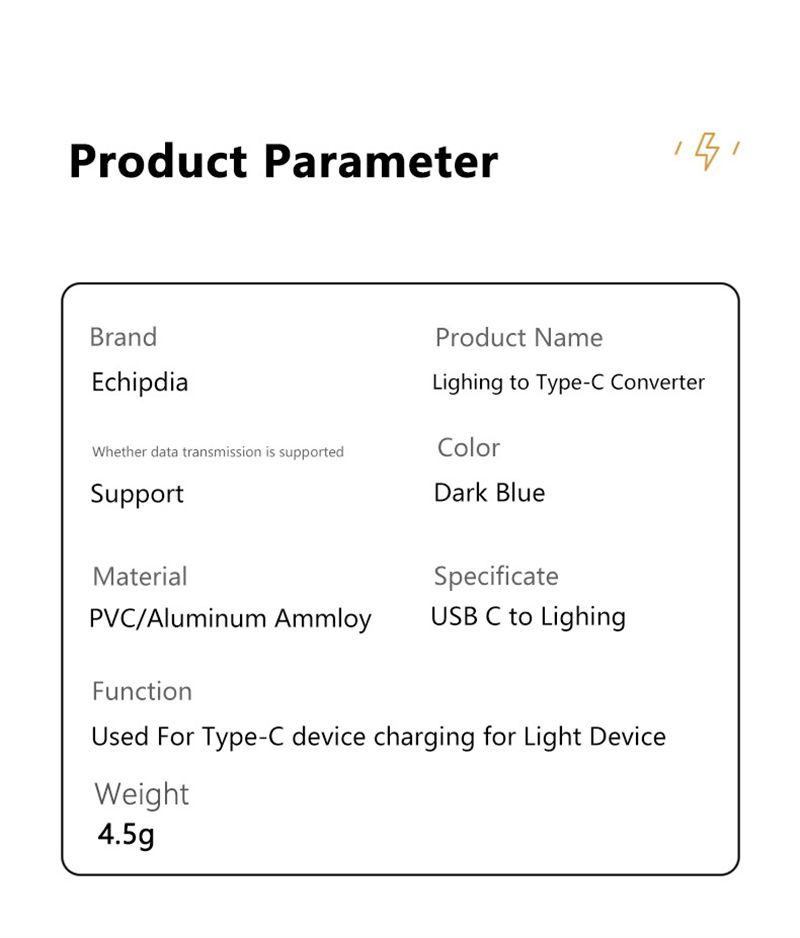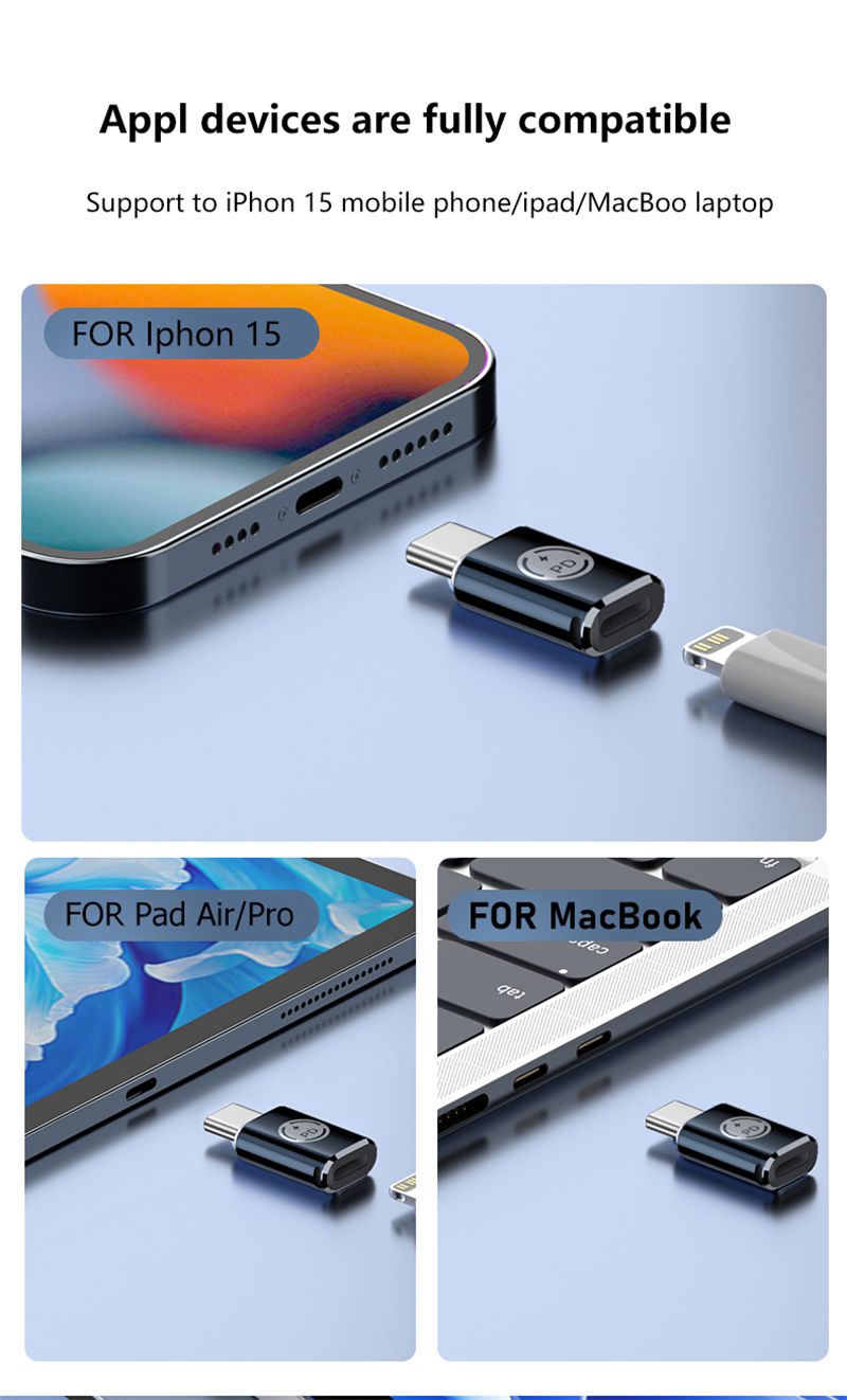 PD 27W Type-C Male to iP iOS Female Fast Data Transmission Adapter for iPhone, iPad, MacBook