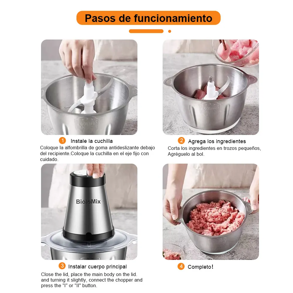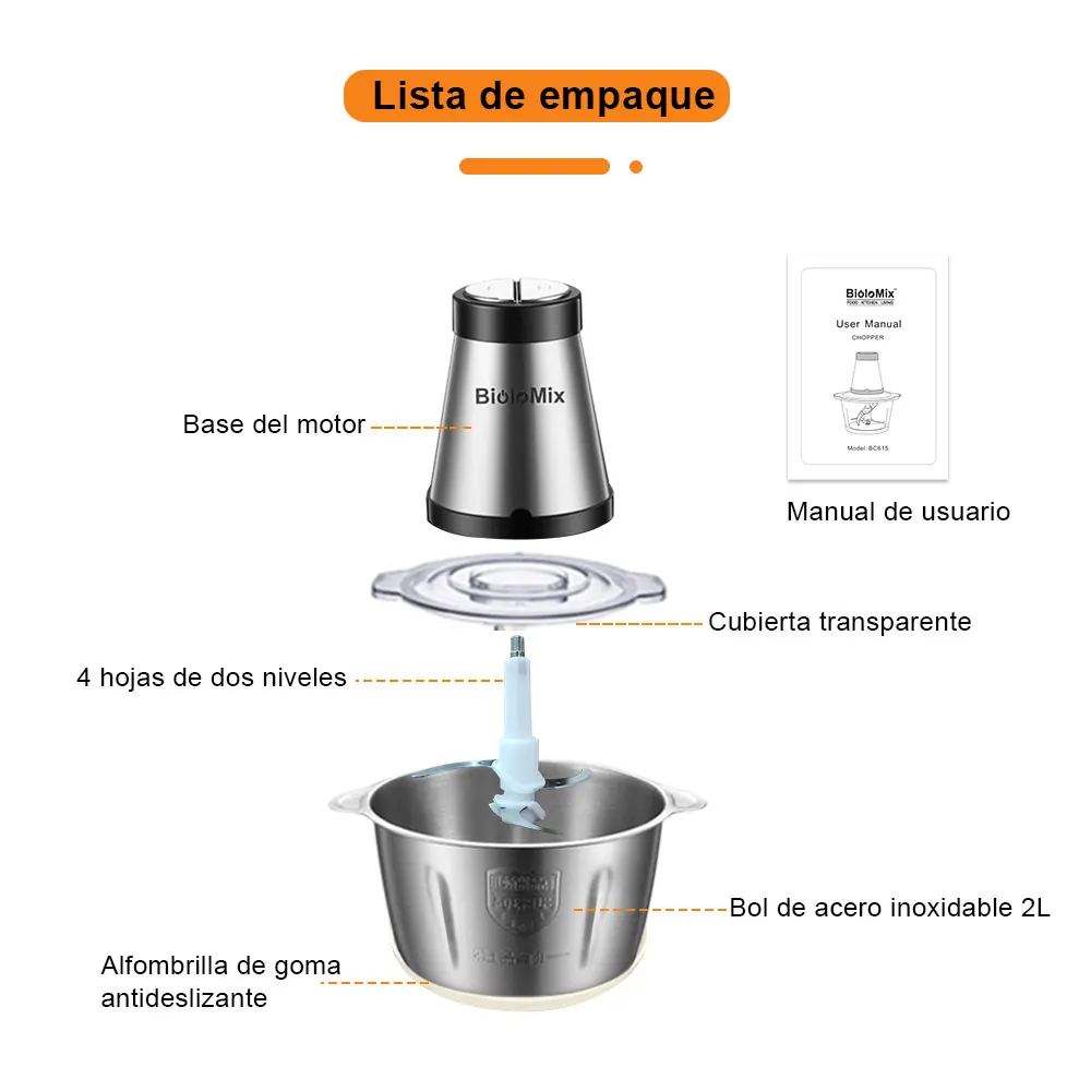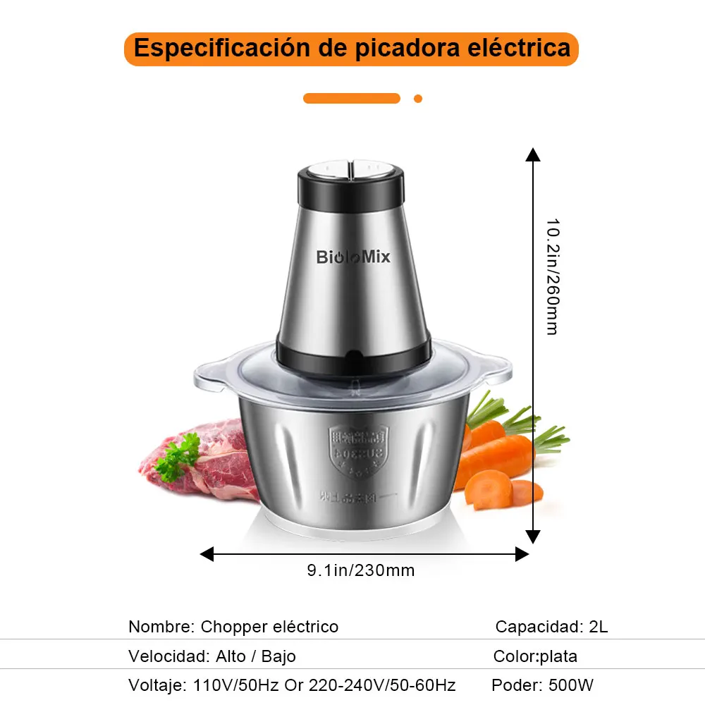 Picadora picadora de carne picadora doméstica de acero inoxidable de 2L, 500W, alta y baja, 2 velocidades