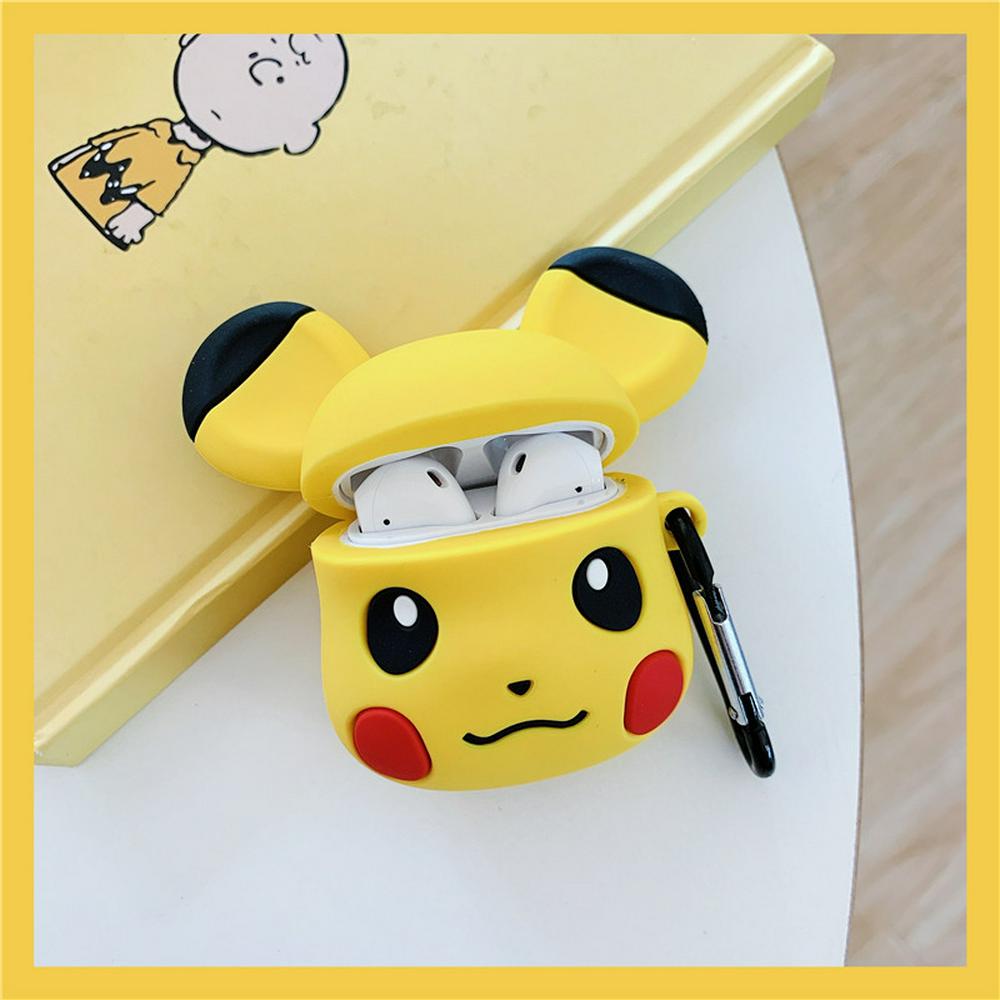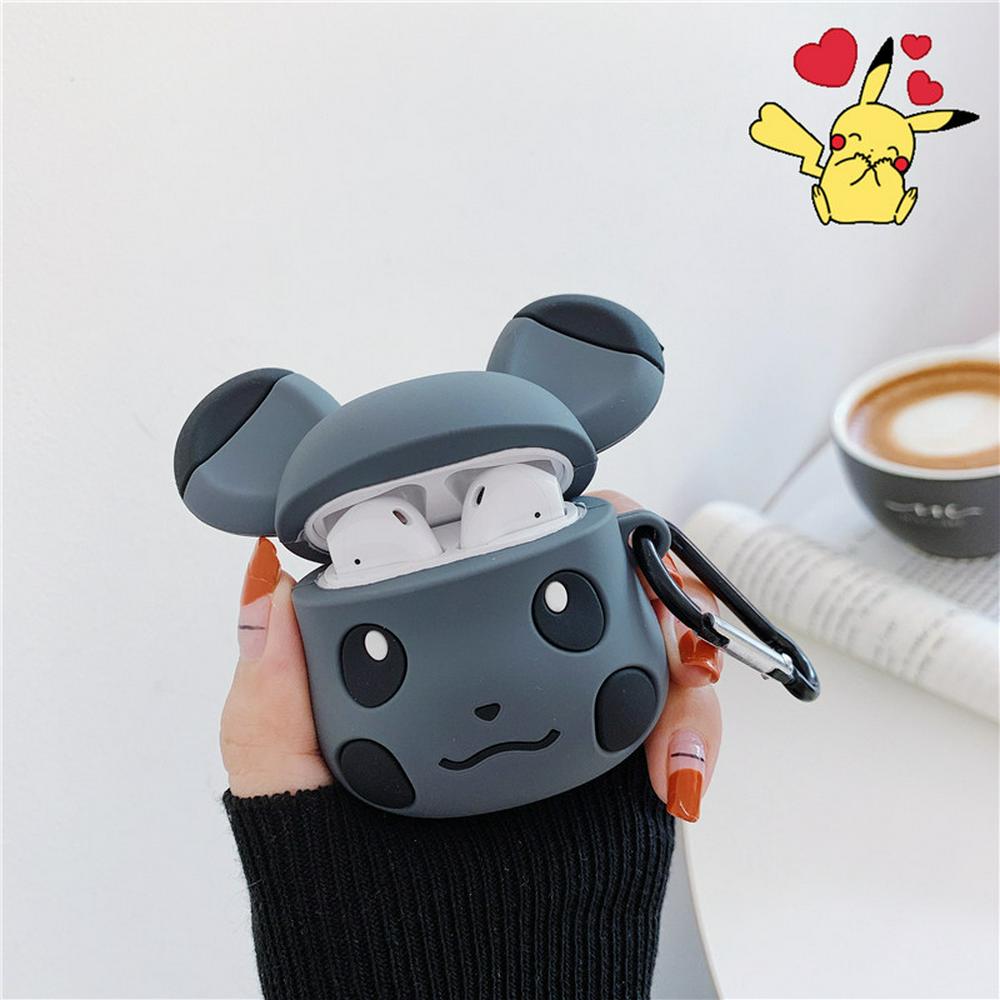 Pikachu Grey Yellow Airpods Case Keychain AirPod Earbud Charging Bluetooth Earphone Protective Hard Cover Case