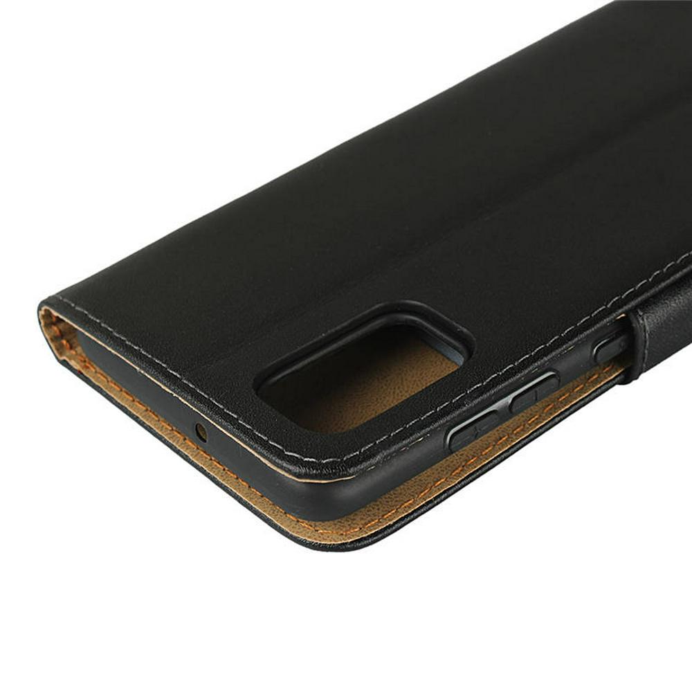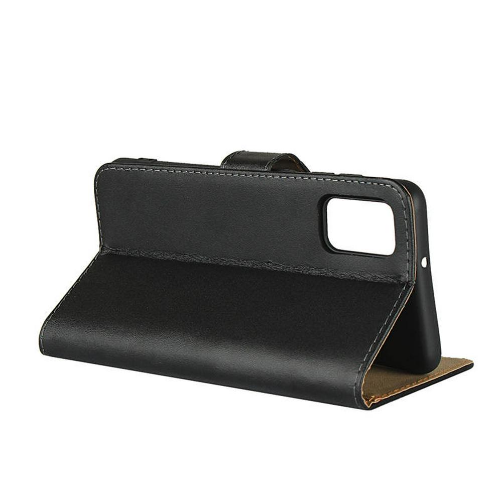 Plain Weave Shock-Absorption Side Flip Genuine Leather + Soft TPU Magnetic Buckle with Card Slots and Stand Wallet Case for Samsung Galaxy A41