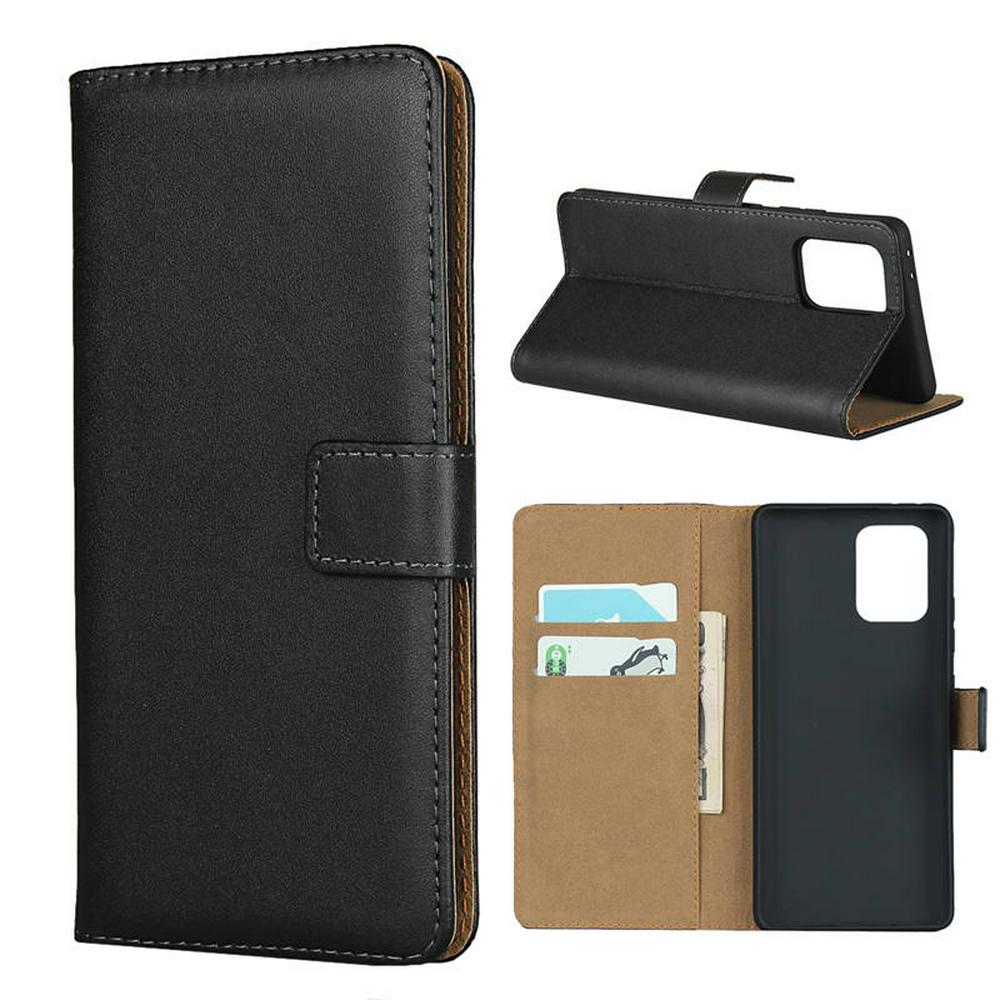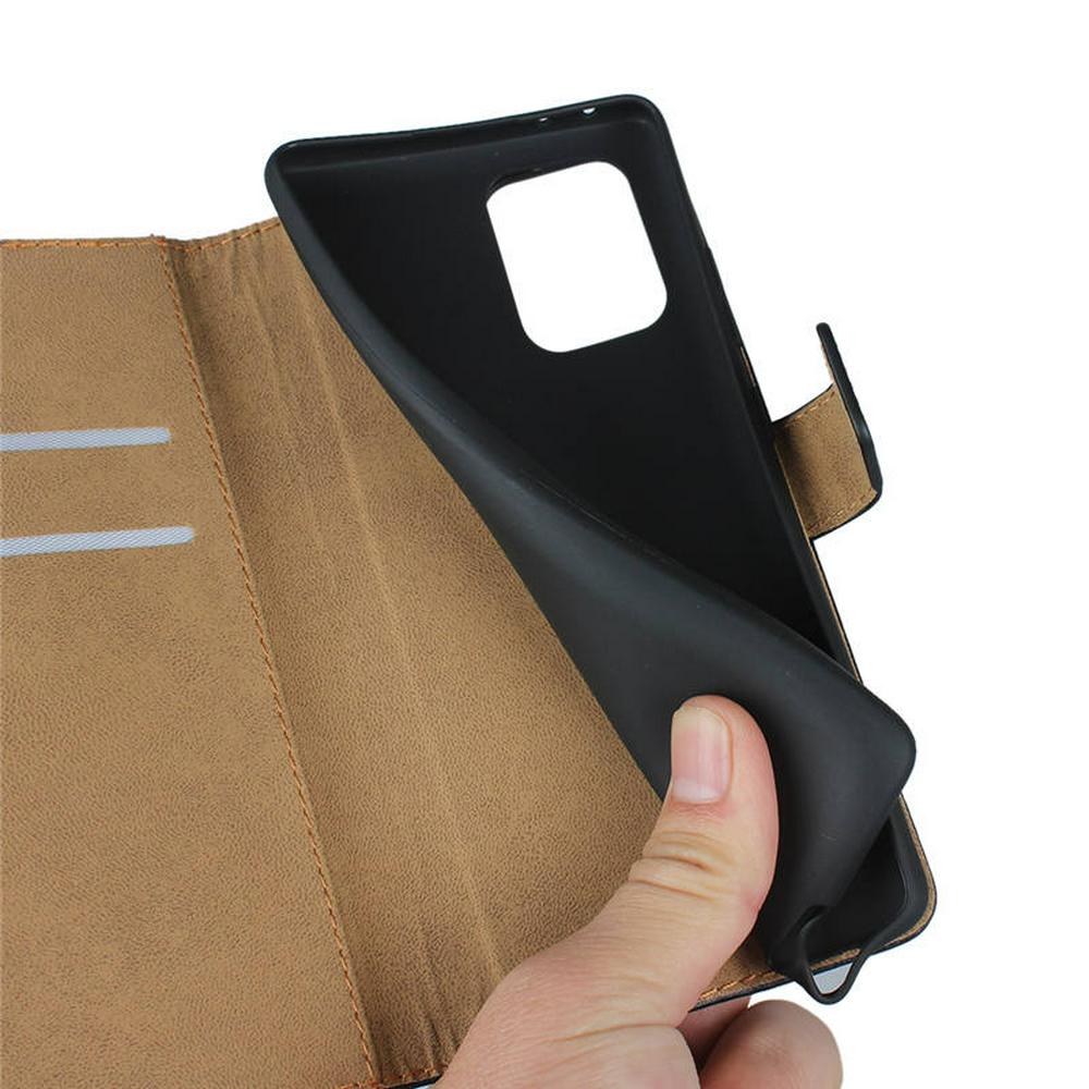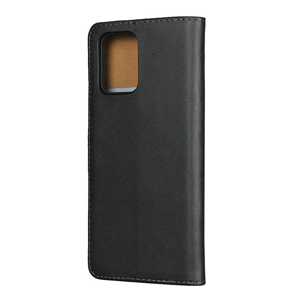 Plain Weave Shock-Absorption Side Flip Genuine Leather + Soft TPU Magnetic Buckle with Card Slots and Stand Wallet Case for Samsung Galaxy A91 / S10 Lite