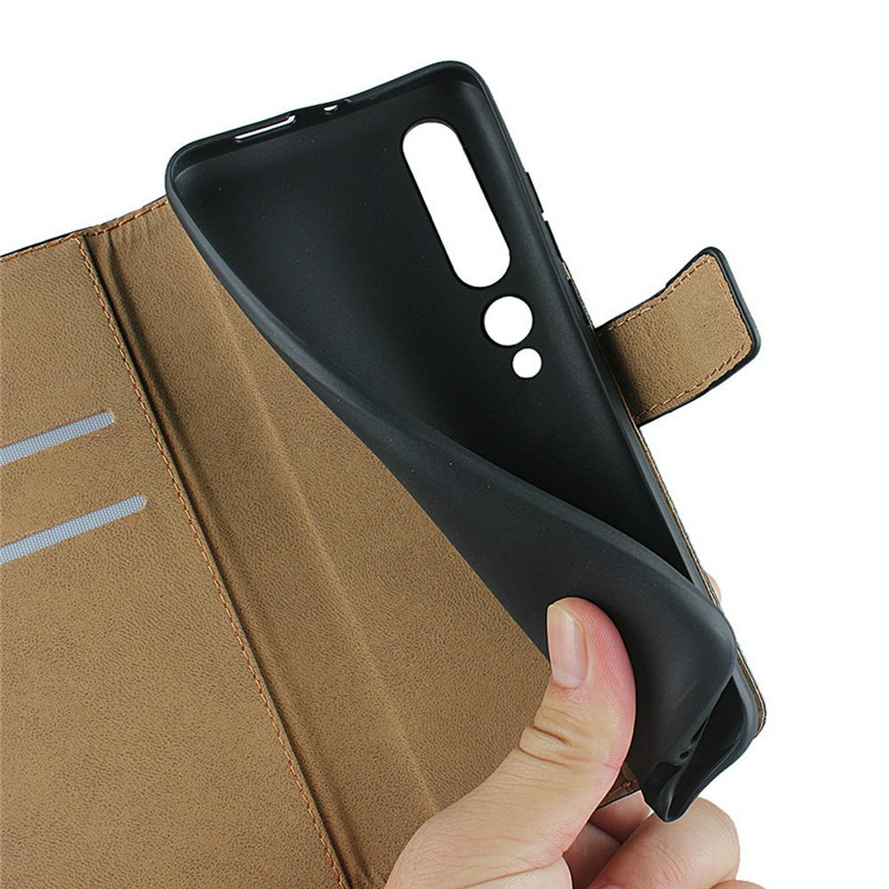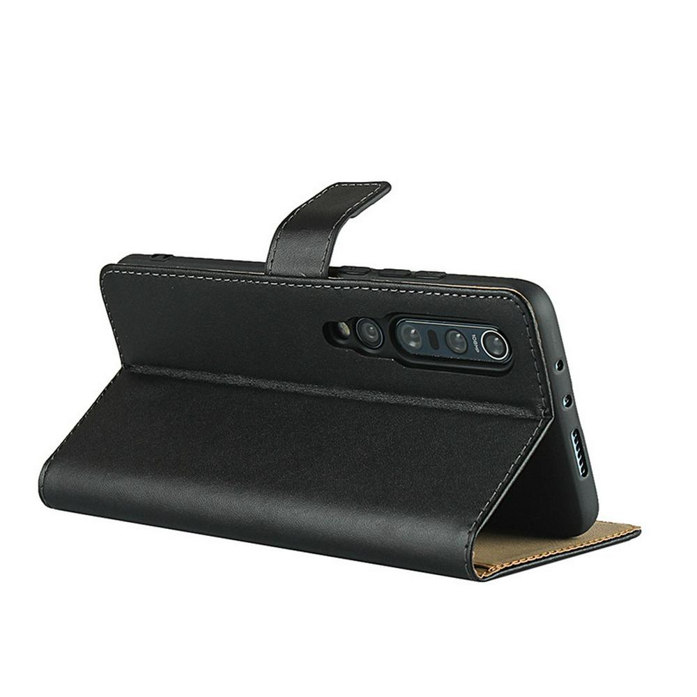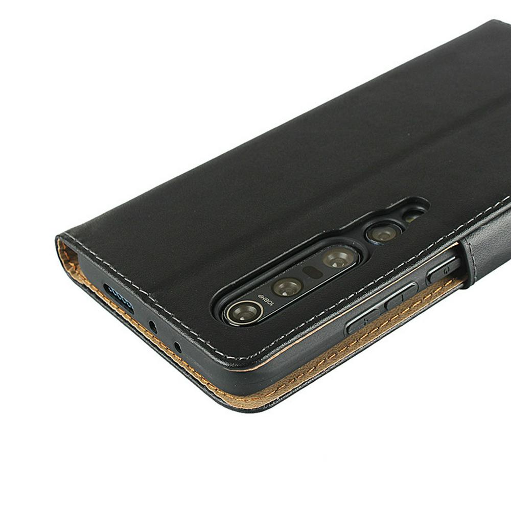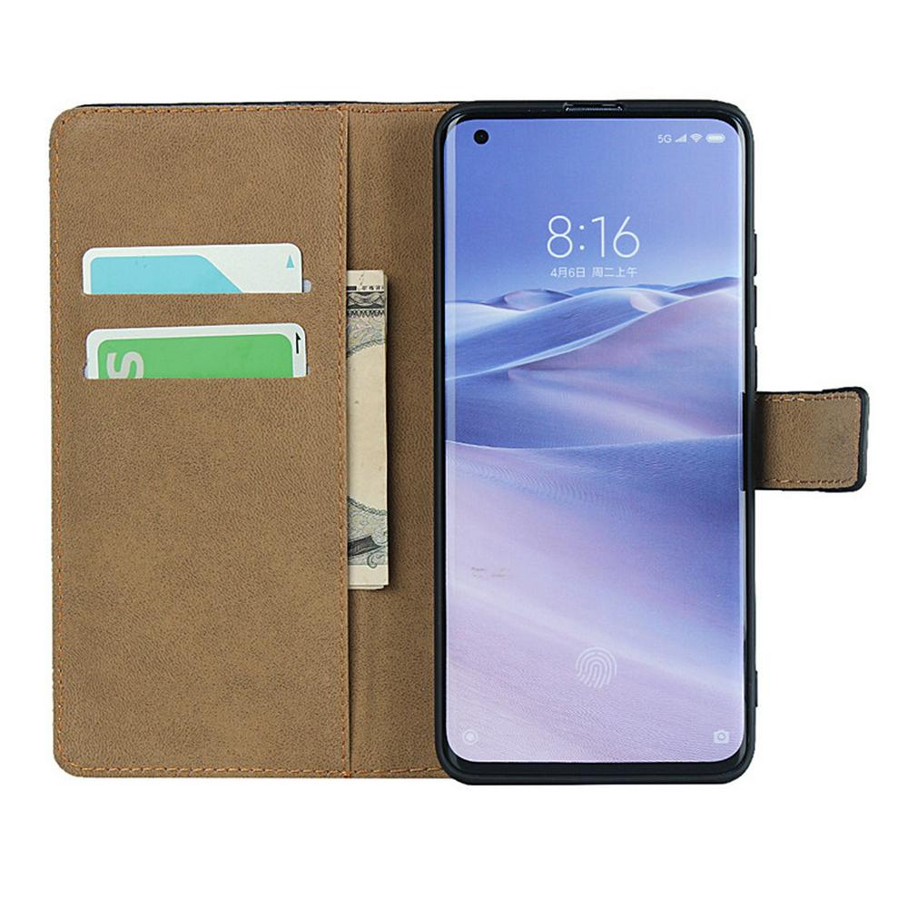 Plain Weave Shock-Absorption Side Flip Genuine Leather + Soft TPU Magnetic Buckle with Card Slots and Stand Wallet Case for Xiaomi Mi 10 Pro 5G