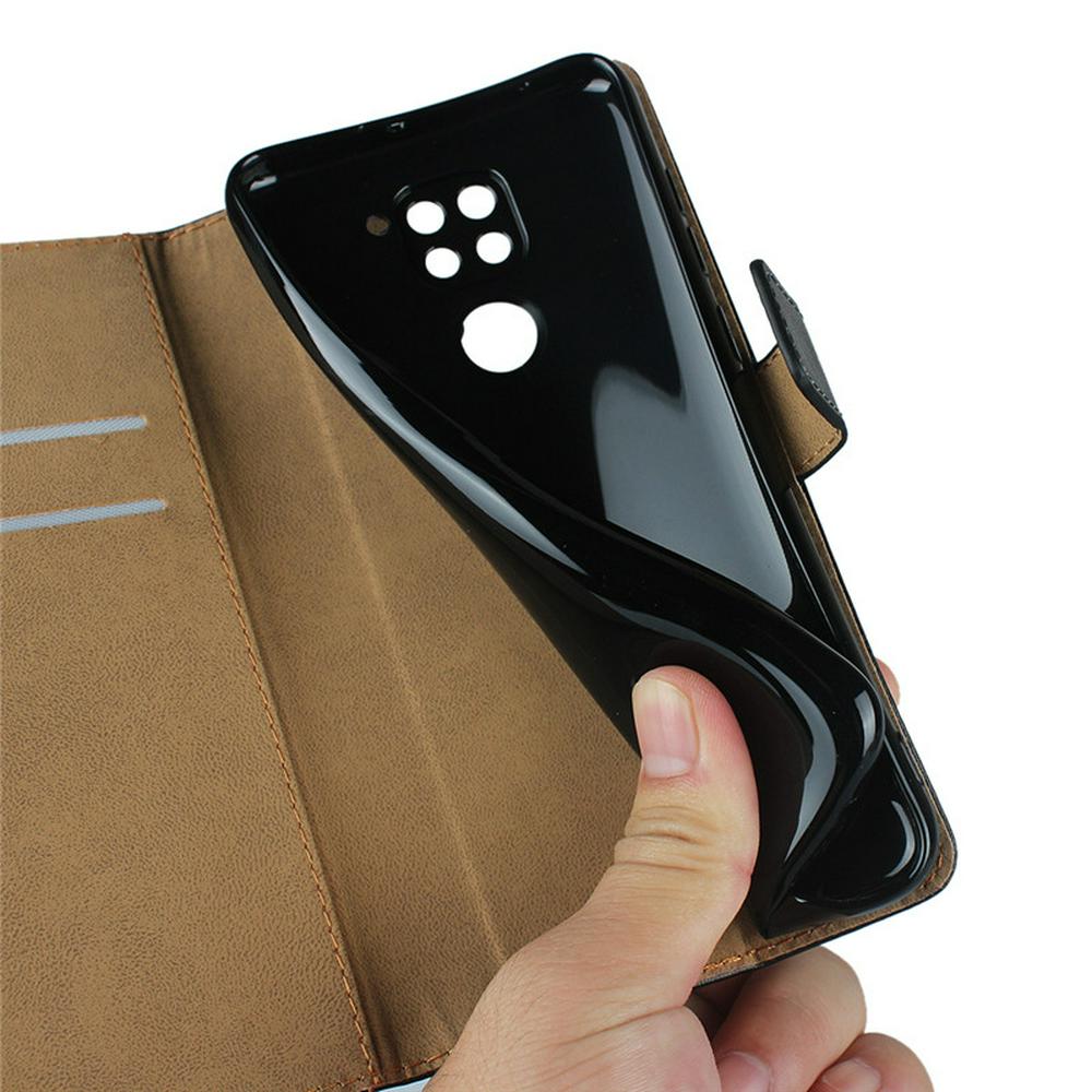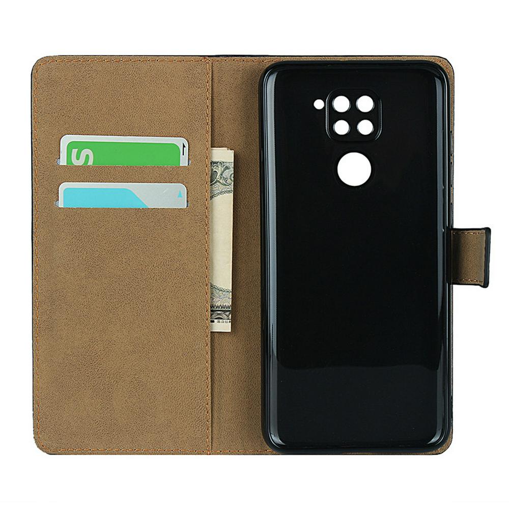 Plain Weave Shock-Absorption Side Flip Genuine Leather + Soft TPU Magnetic Buckle with Card Slots and Stand Wallet Case for Xiaomi Redmi Note 9 / 10X 4G