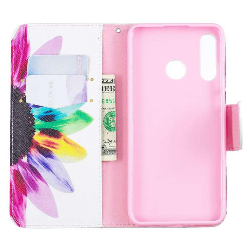 Plum Bear Feat Giraffe Color Painting Wallet Style PU Leather + Soft TPU Card Holder with Stand and Magnetic Buckle Case for Huawei P30 Lite