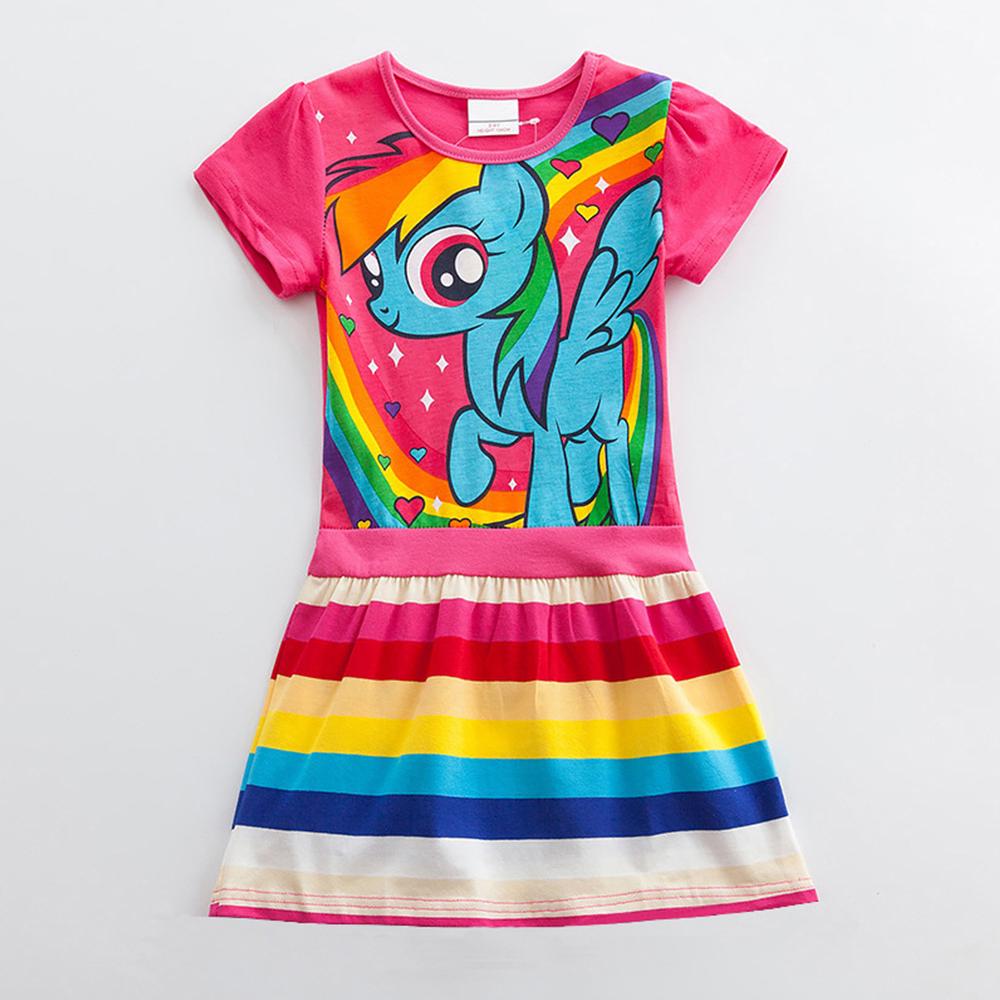 Polaroid Pony Cartoon Skirt Children's Wear Cotton Girls Short Sleeve Dresses