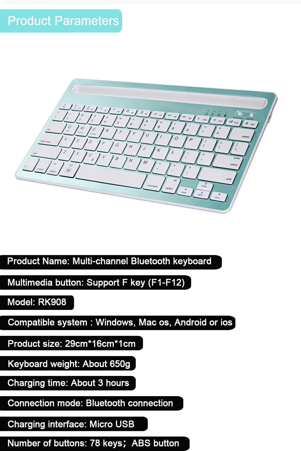 Portable 78 key Wireless Bluetooth Keyboard For Tablet Laptop Smartphone iPad Support IOS Android System Phone Universal