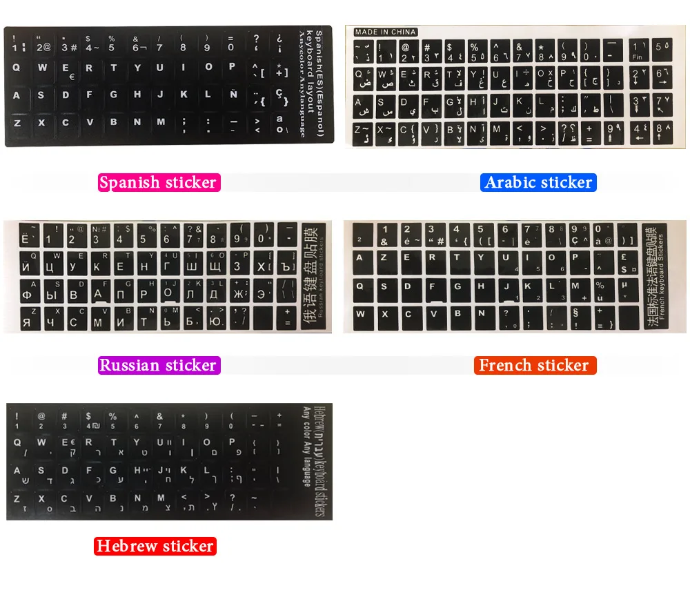 The Keyboard is English Letters Keyboard, If You Need Other Language (Russian, Spanish, French, Hebrew, Arabic, Portuguese) Letters Sticker, Please Leave Us Message ! ! !