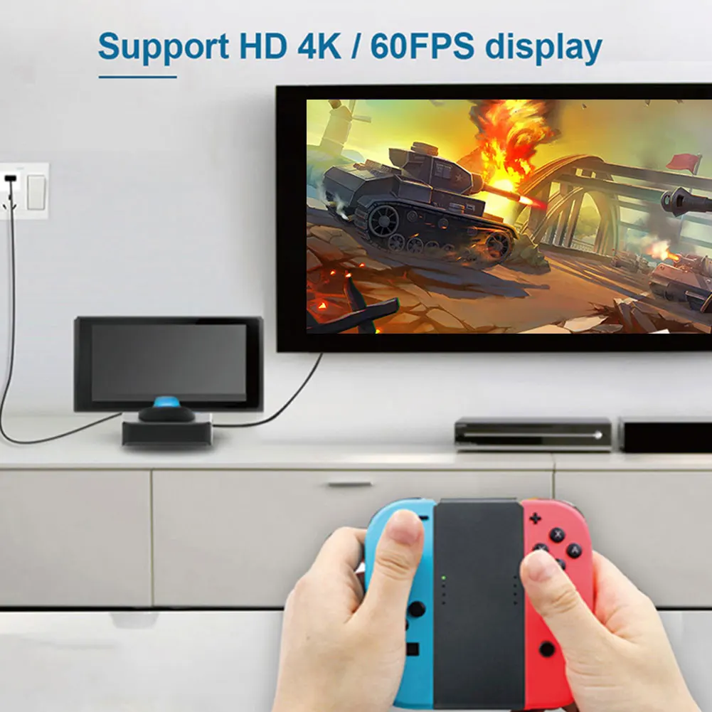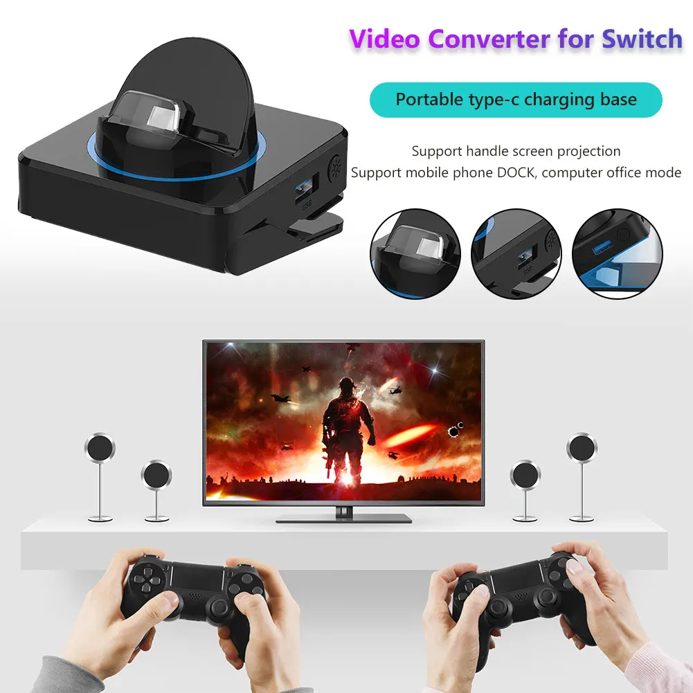 Portable Charging Dock Station for Nintendo Switch NS HDMI-compatible to TV Video Converter Adapter Type-C Charger Base Stand Description: For Switch video converter imported chip can be upgraded. If the game console cannot be upgraded later, users can upgrade by themselves. Support handle projection, support mobile phone dock, computer office mode. Imported chip, high temperature operation, long time use will not jump frequency, can not cast screen, or burn machine, etc. A new mini base designed according to for switch game console, which can replace the original base. It has the functions of video connection between for switch console and TV, video for switch and so on. Specification: USB-C input: DC 15V/ 2.6A USB-C output: DC 15V/ 2A USB-C input: DC 15V/ 2.6A USB-C output: DC 15V/ 2A Port parameters: USB port: USB2.0x2 USB port: USB3.0x1 USB TYPE C female seat: original power input, PD charger up to 39 watts or more can be used USB TYPE C male: for SWITCH host communication input HDMI port: video output, HDMI version 2.0A USB port: USB2.0x2 USB port: USB3.0x1. USB TYPE C female seat: original power input, PD charger up to 39 watts or more can be used USB TYPE C male: for SWITCH host communication input HDMI port: video output, HDMI version 2.0A Note: Due to the different monitor and light effect, the actual color of the item might be slightly different from the color showed on the pictures. Thank you! Please allow 1-2cm measuring deviation due to manual measurement. 1 X Converter 1 X USB Cable 1 X Instruction