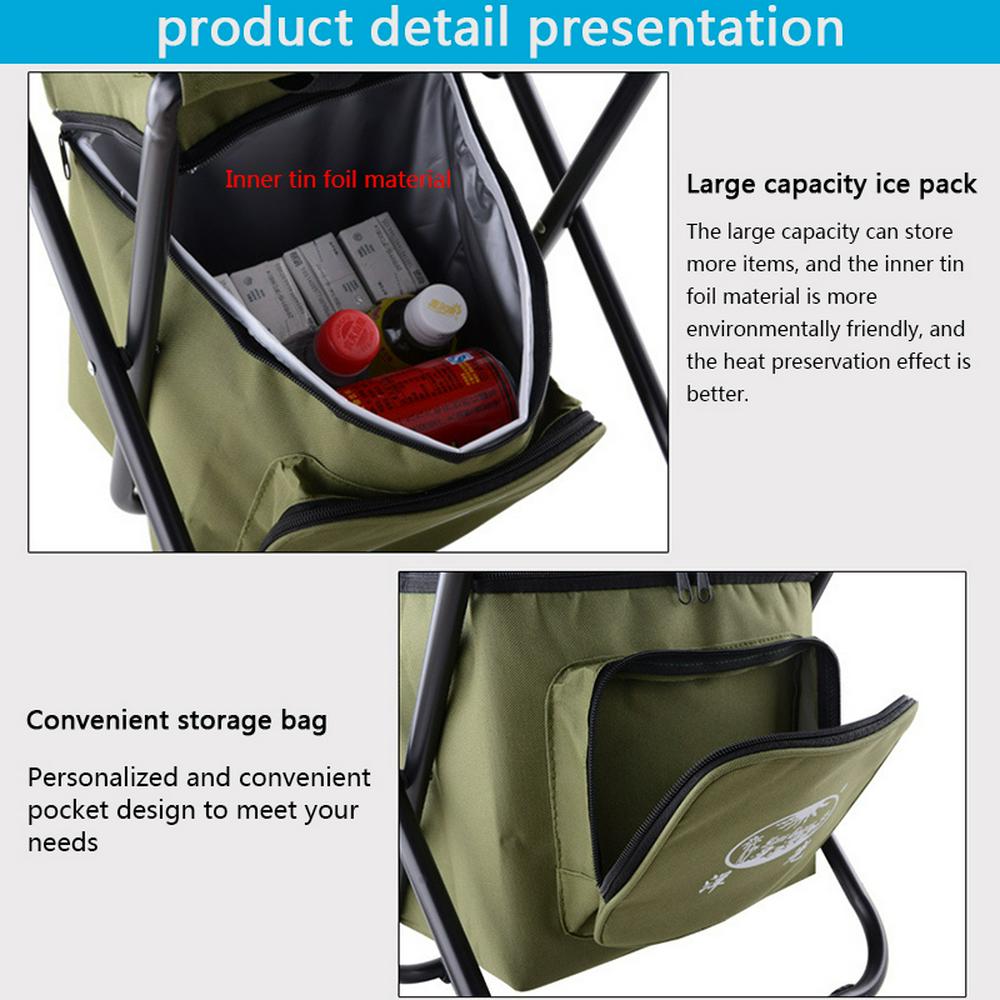 Portable Folding Camping Stool with Insulated Ice Bag for Camping, Hiking