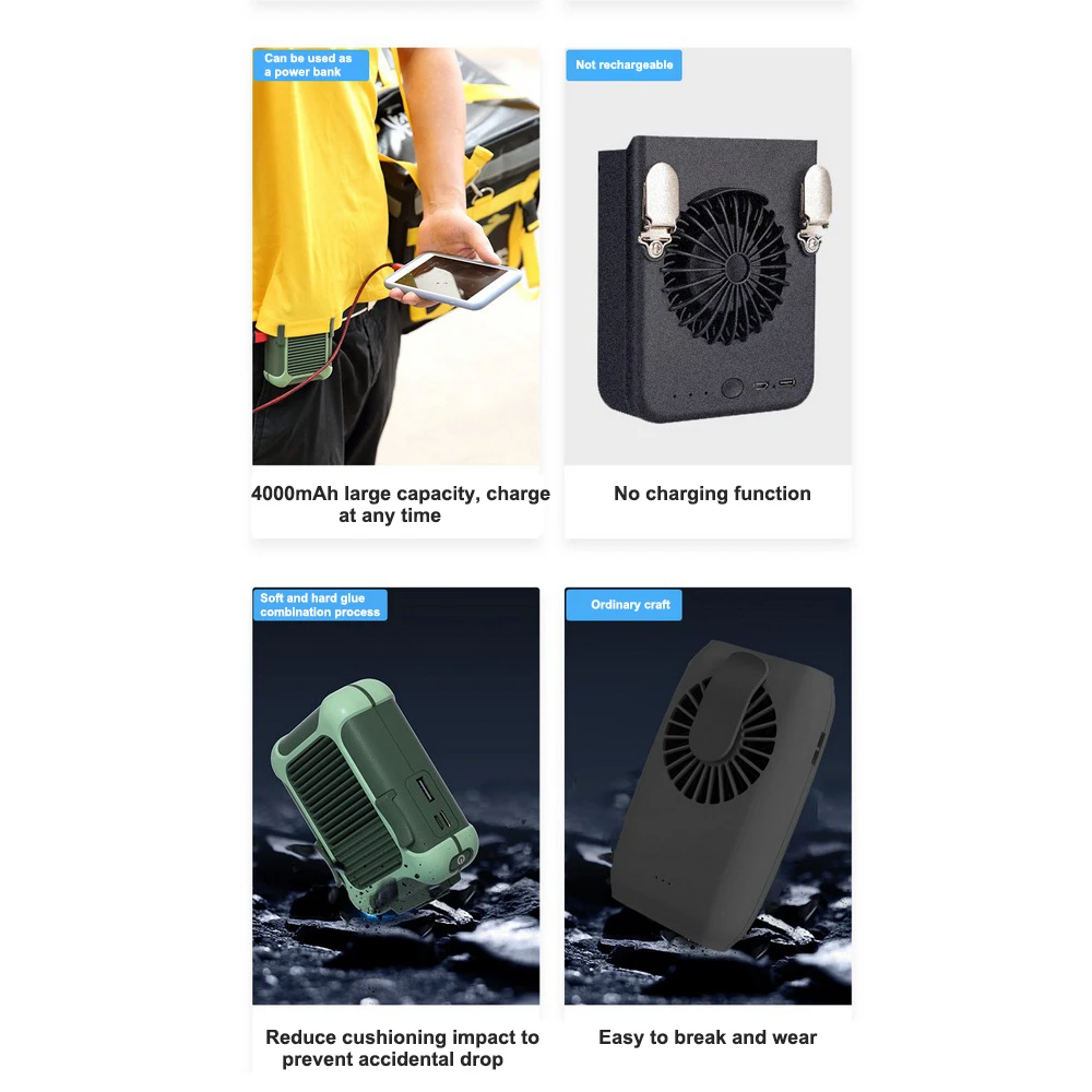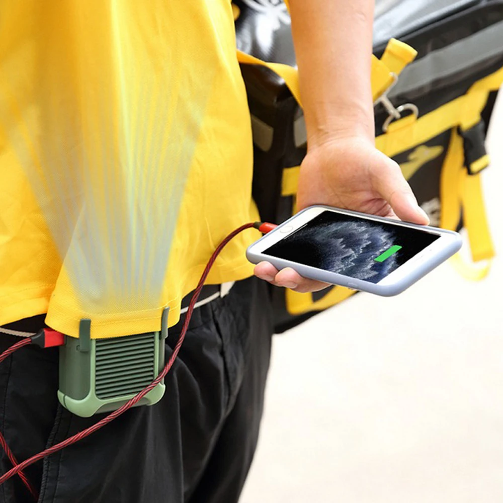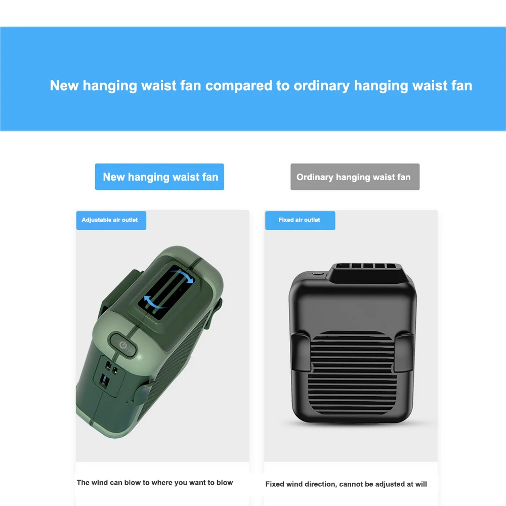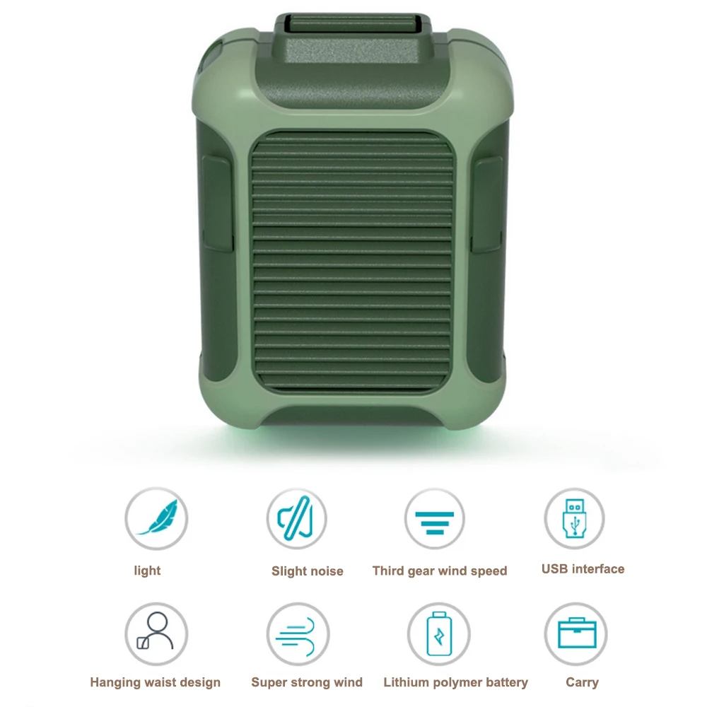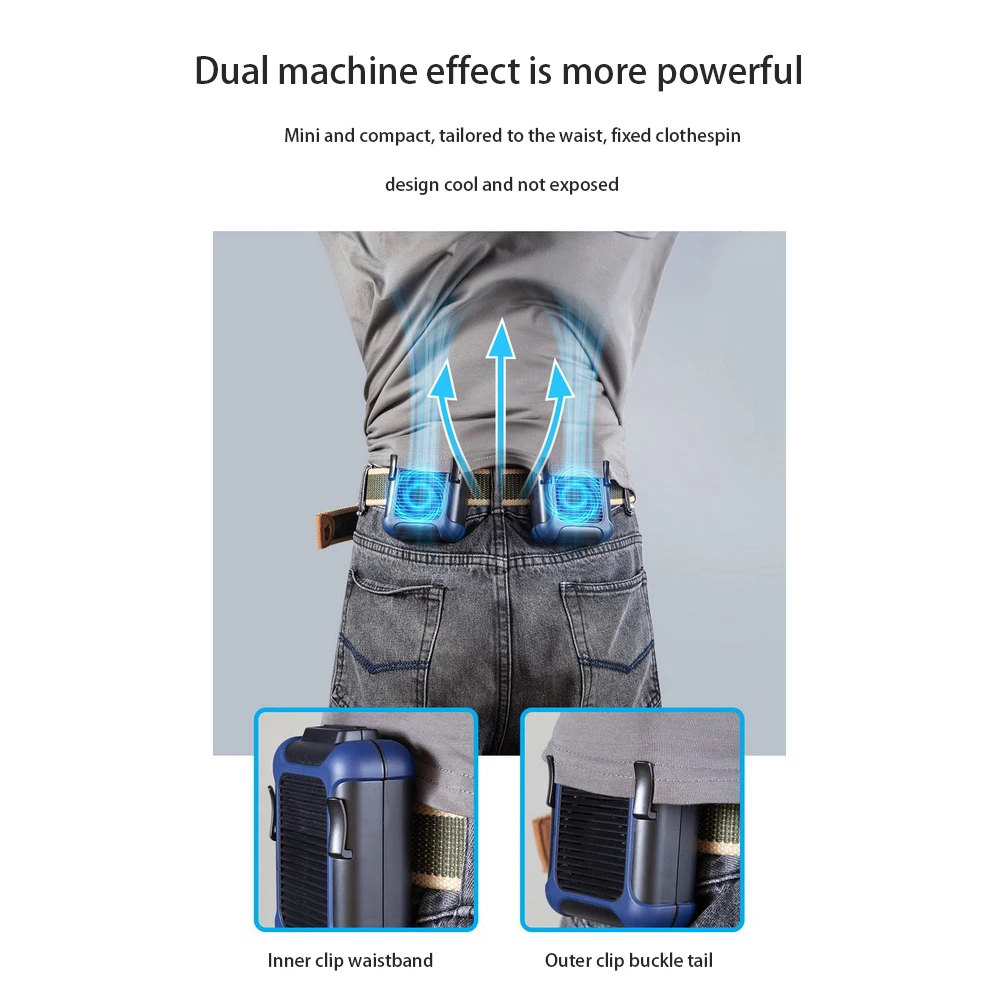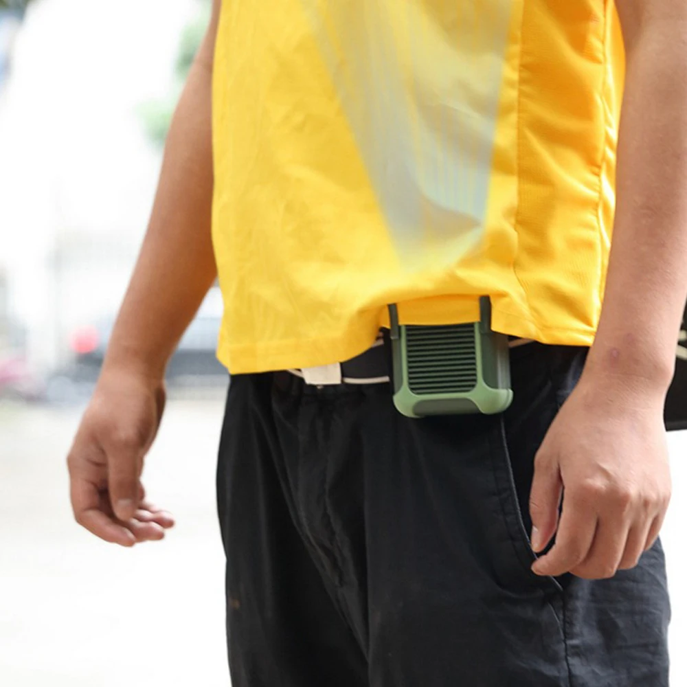 - Mini and compact, tailored for waist, fixed clothespin design, cool breeze is not exposed
