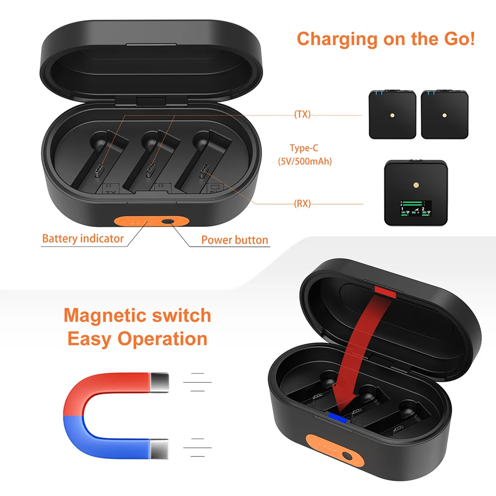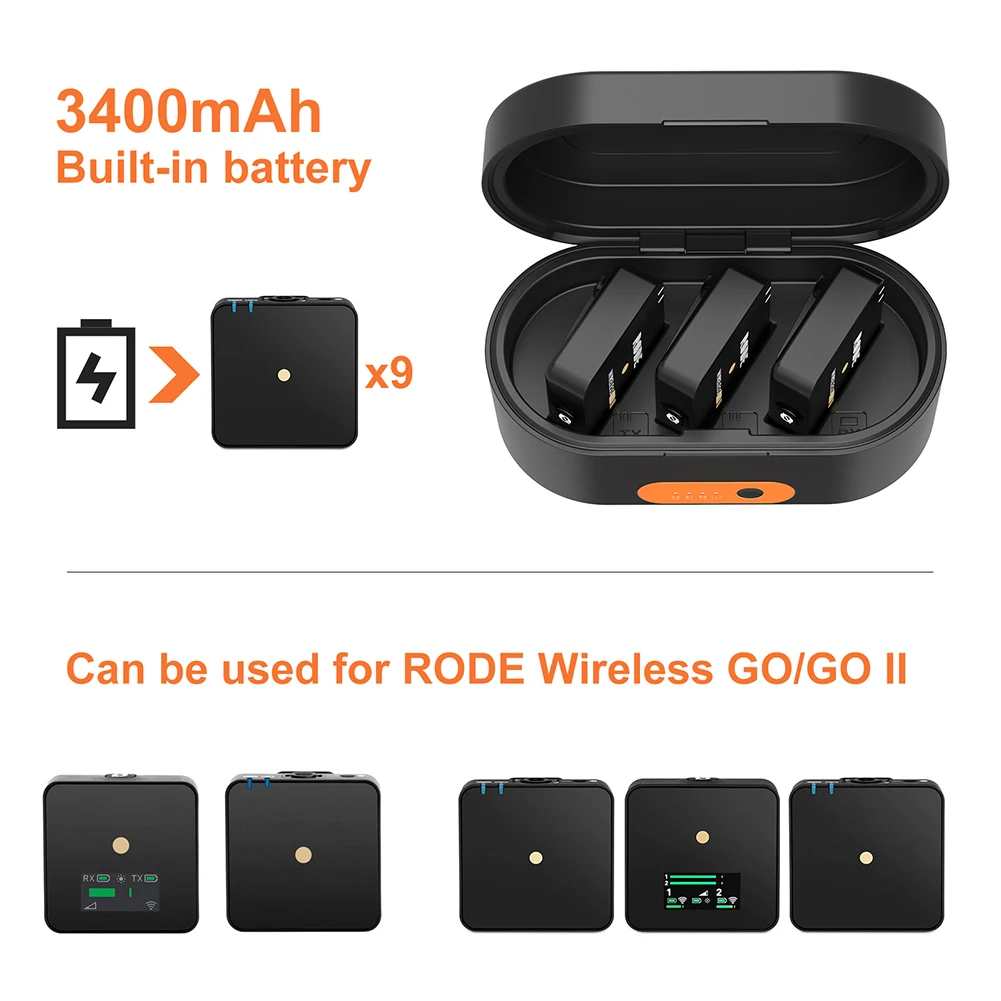 Portable Microphone Charger Box for Rode Wireless Go 1/2 Fast Charging 3400mAh Case 3 Slot Built-in Battery Power Bank