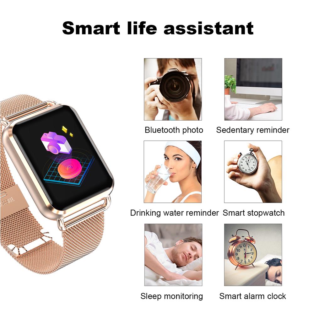 Health monutoring:All day heart rate measurement (dynamic,static,heart rate+),blood pressure measurement (timing blood pressure measurement can be set),blood oxygen measurement and fatigue monitoring.