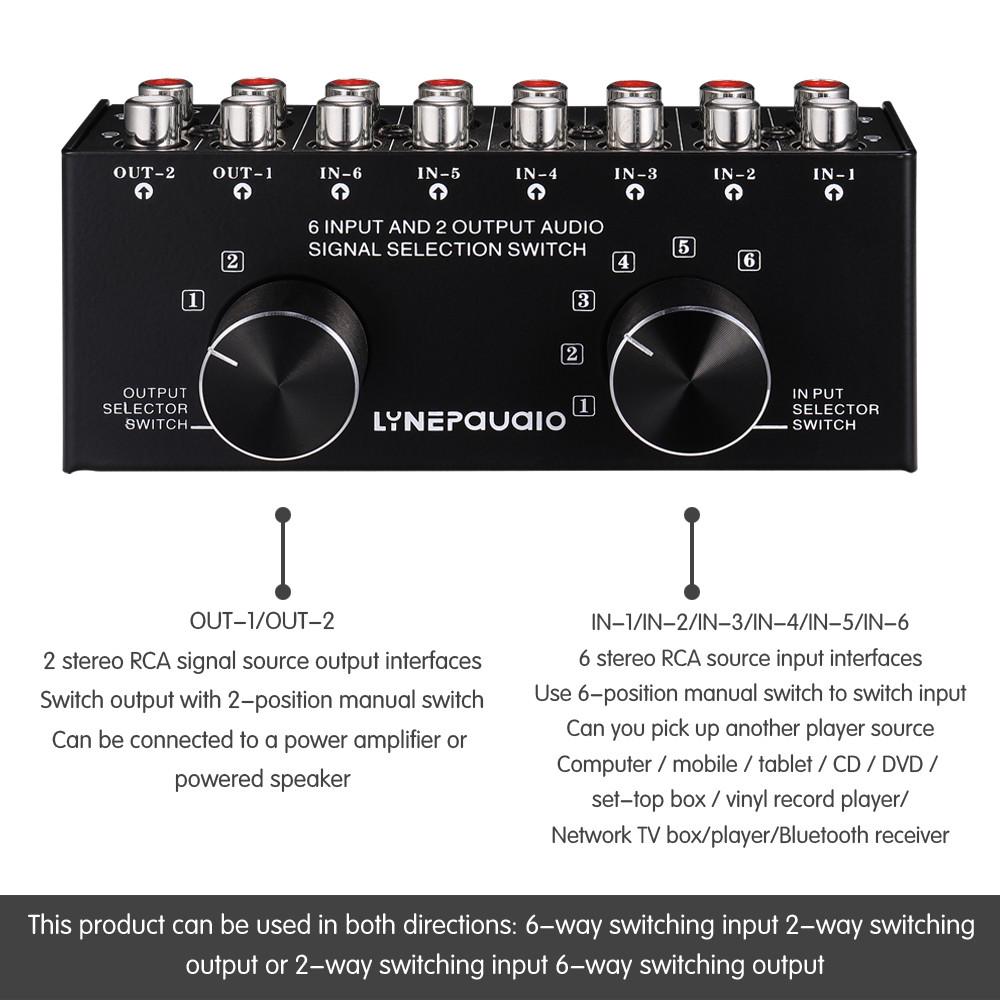RAC Audio Switch 6 Input 2 Output Two-way Composite Audio Selector Box