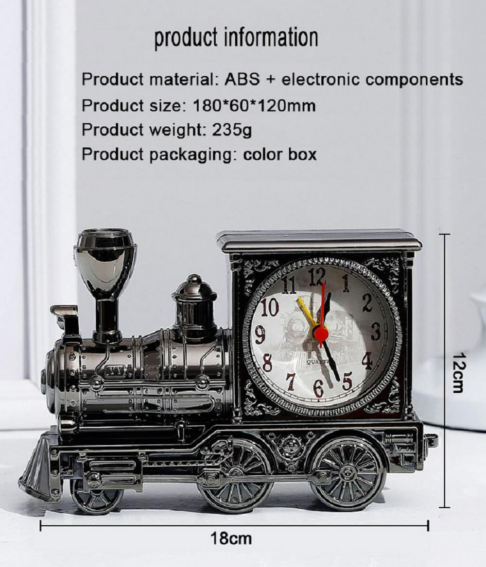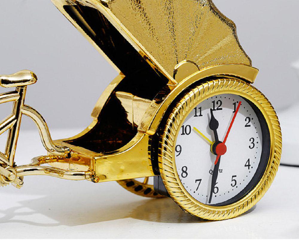 Retro Metallic Alarm Clock Battery Operated Engine/Rickshaw Clock