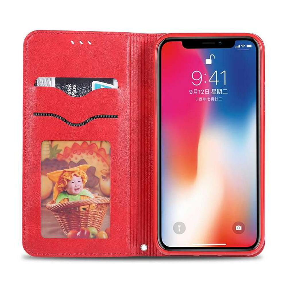 Retro Pattern Solid Color PU Leather + Soft TPU Case with Card Slots and Picture Frame Protective Cover Case for iPhone X / XS