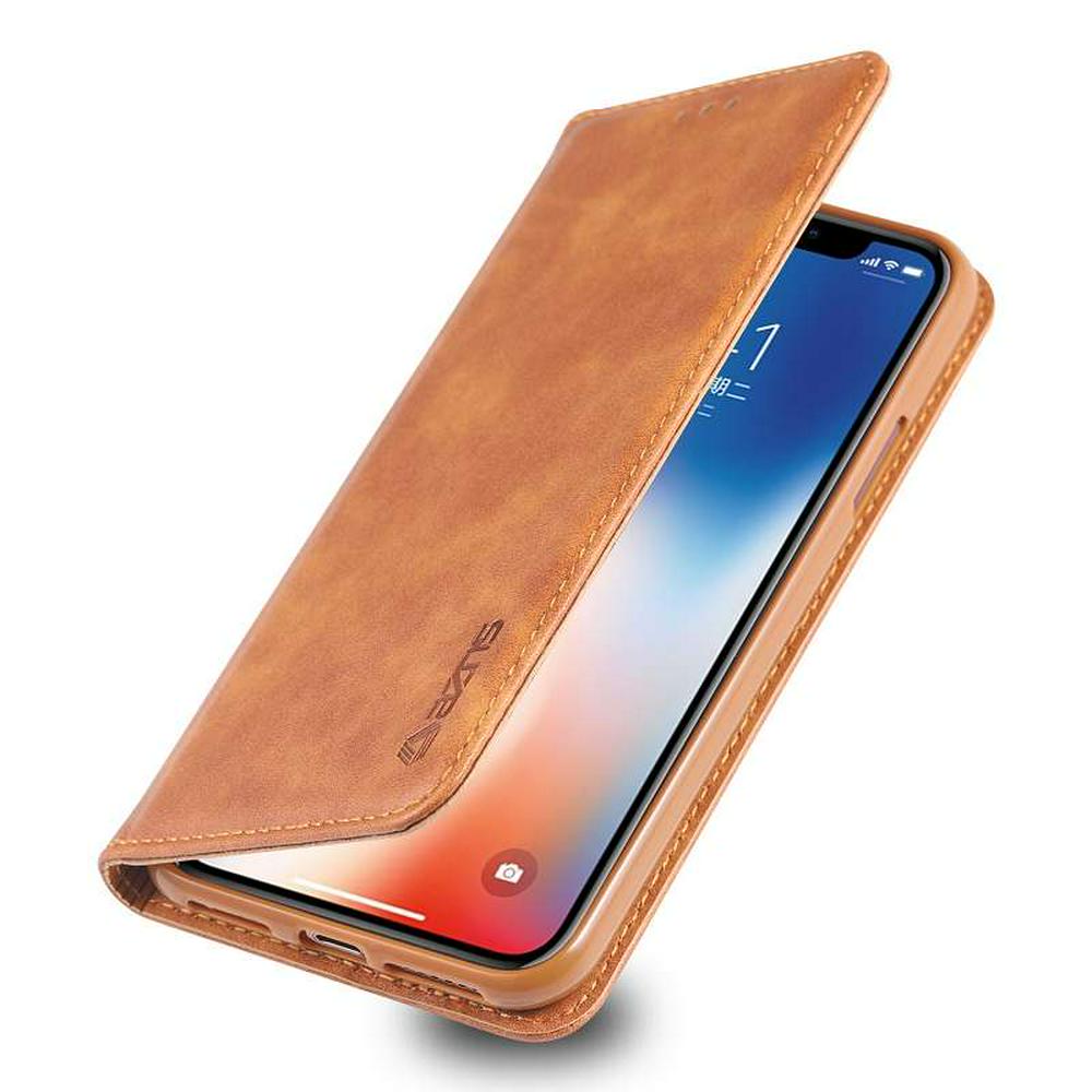 Retro Pattern Solid Color PU Leather + Soft TPU Case with Card Slots and Picture Frame Protective Cover Case for iPhone X / XS