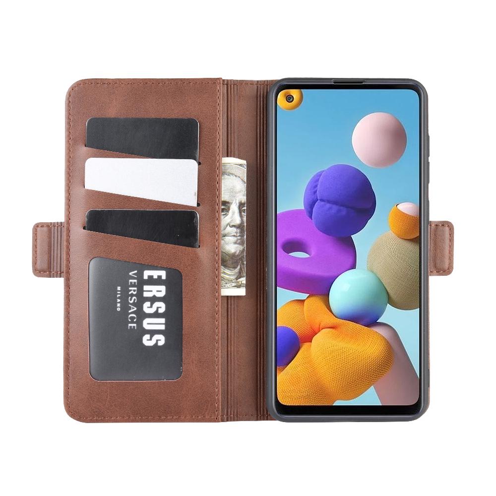 Retro Side Flip Shockproof Anti-Scratch PU Leather + Soft TPU Picture Frame Double Buckles with Stand and Card Slots Wallet Case for Samsung Galaxy A21s