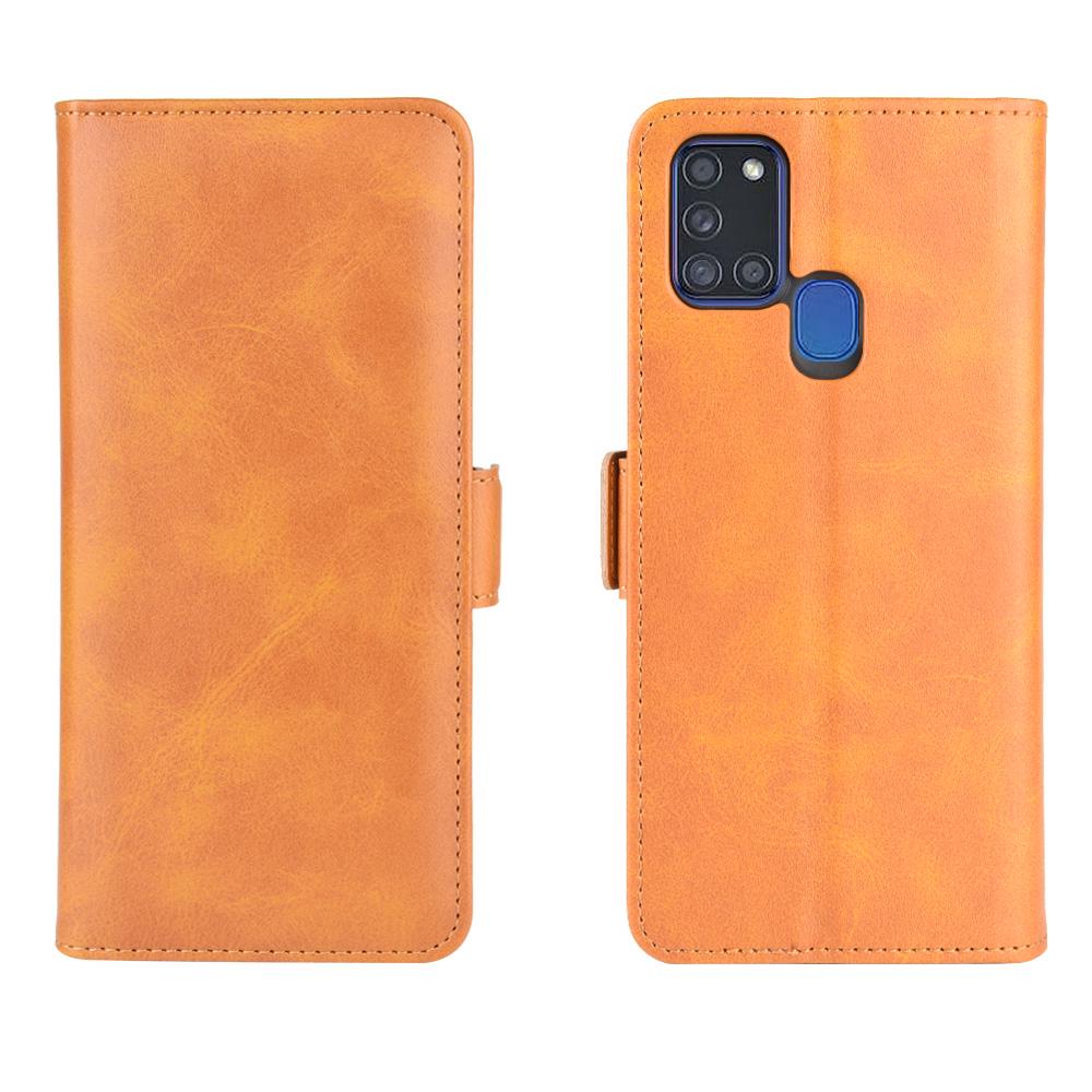 Retro Side Flip Shockproof Anti-Scratch PU Leather + Soft TPU Picture Frame Double Buckles with Stand and Card Slots Wallet Case for Samsung Galaxy A21s
