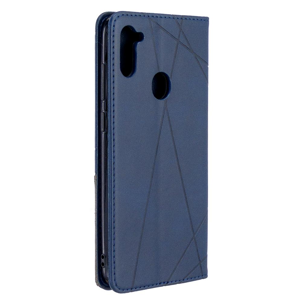 Rhombus Pattern Anti-Fall Side Flip PU Leather + Soft TPU Picture Frame Stand with Magnetic Closure and Card Slot Wallet Case for Samsung Galaxy A11