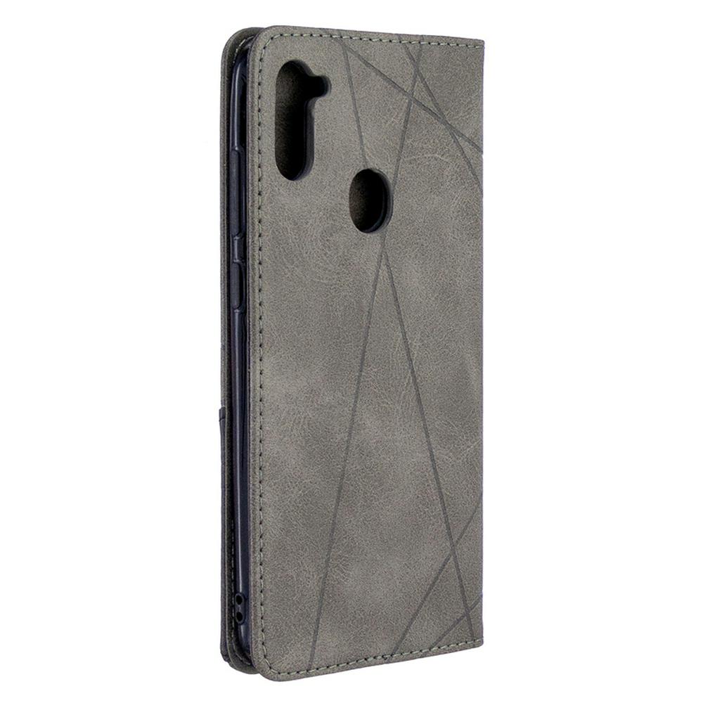 Rhombus Pattern Anti-Fall Side Flip PU Leather + Soft TPU Picture Frame Stand with Magnetic Closure and Card Slot Wallet Case for Samsung Galaxy A11
