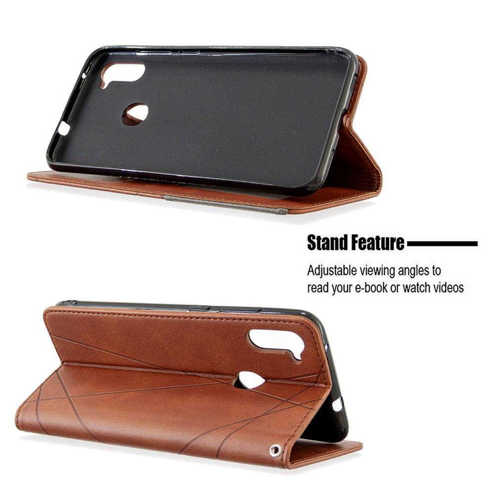 Rhombus Pattern Anti-Fall Side Flip PU Leather + Soft TPU Picture Frame Stand with Magnetic Closure and Card Slot Wallet Case for Samsung Galaxy A11