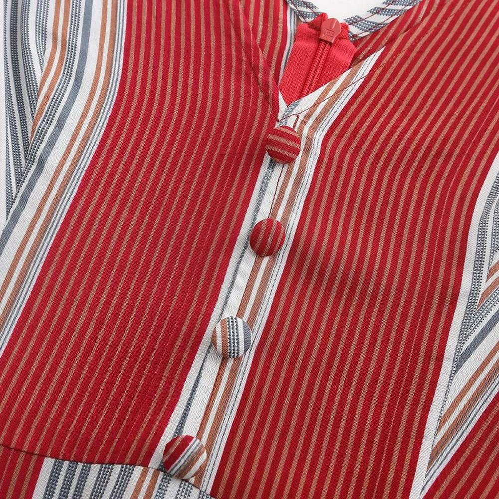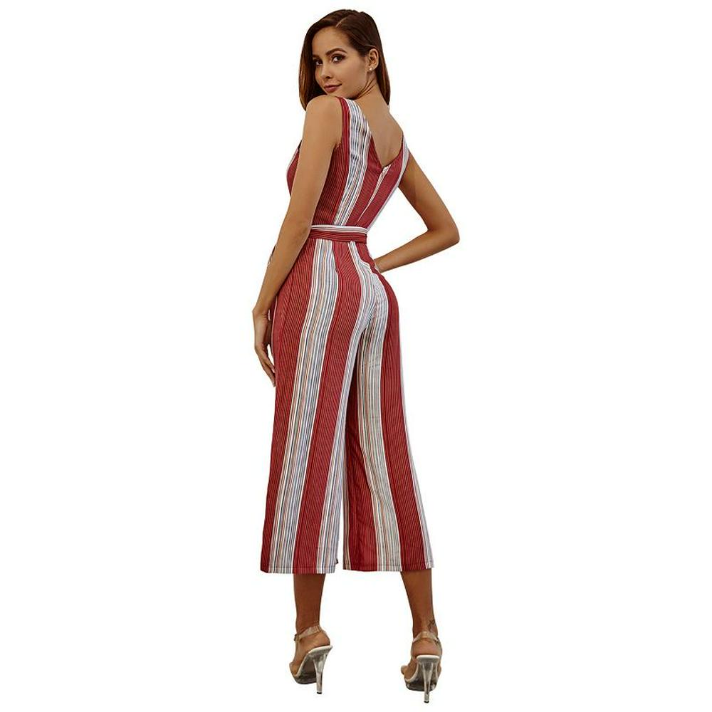 S-XL Size Striped Pattern Summer Comfortable High Waist Fashion Casual Sexy V-Neck Button with Belt Jumpsuit