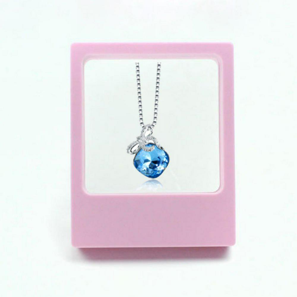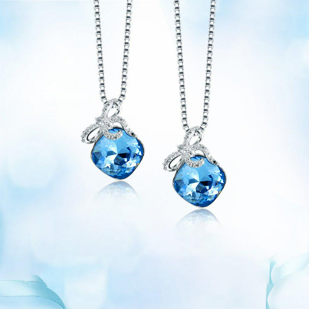 S925 Sterling Silver Fashion Simple Pendants Austria Crystal Retro Blue Jewelry