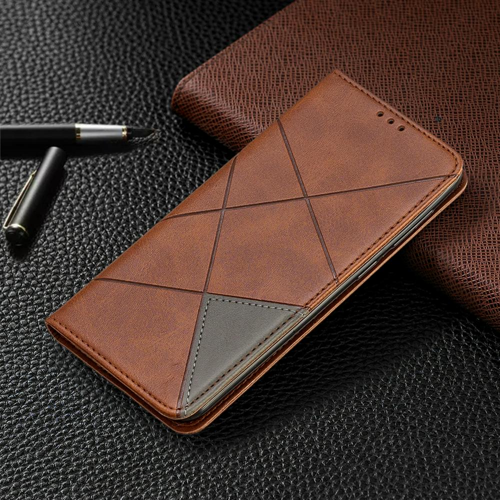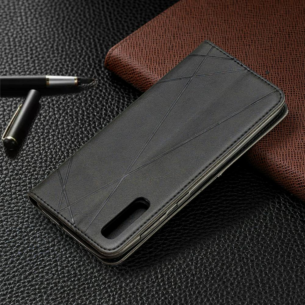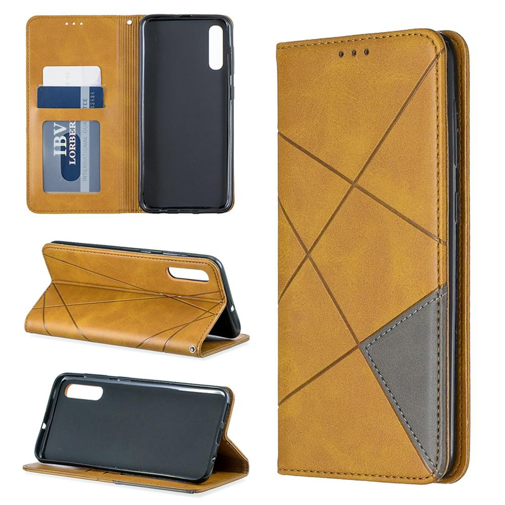 Samsung A50 PU+TPU Clamshell Phone Case Geometric Mosaic Pattern Retro Simple Solid Color Style Leather Phone Case for Samsung A50 Phone Case