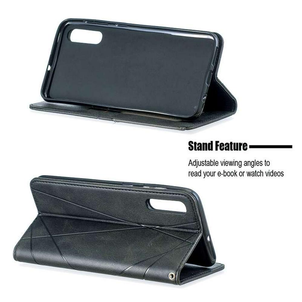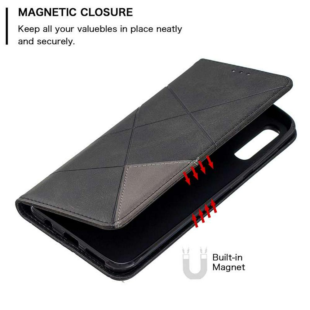 Samsung A50 PU+TPU Clamshell Phone Case Geometric Mosaic Pattern Retro Simple Solid Color Style Leather Phone Case for Samsung A50 Phone Case