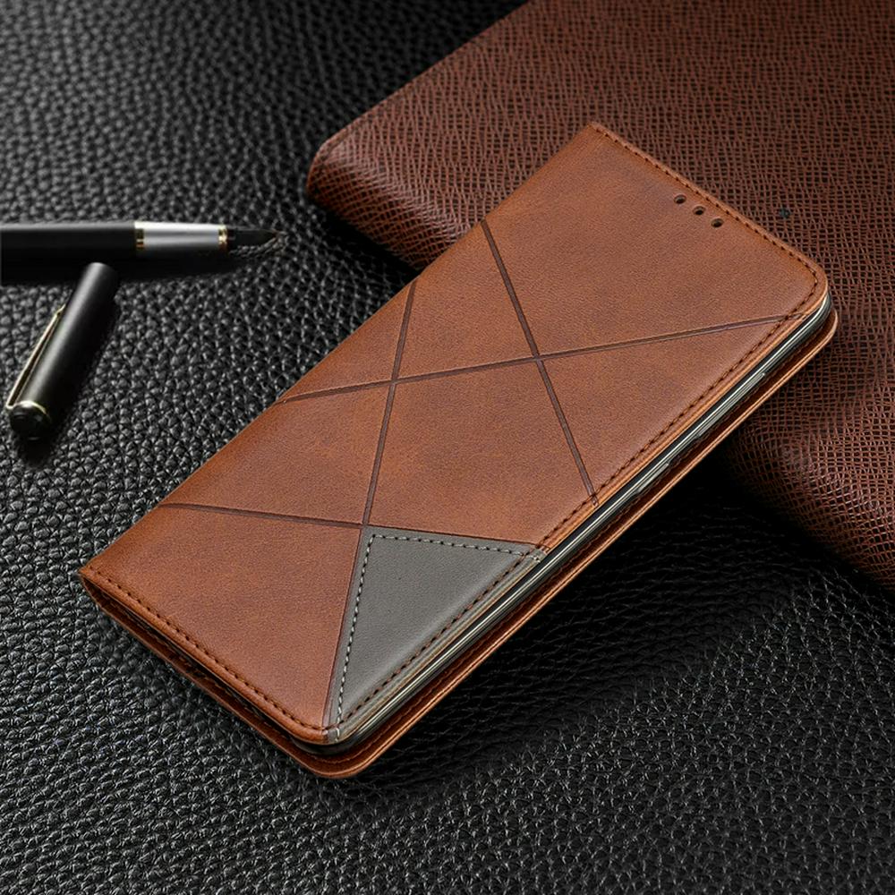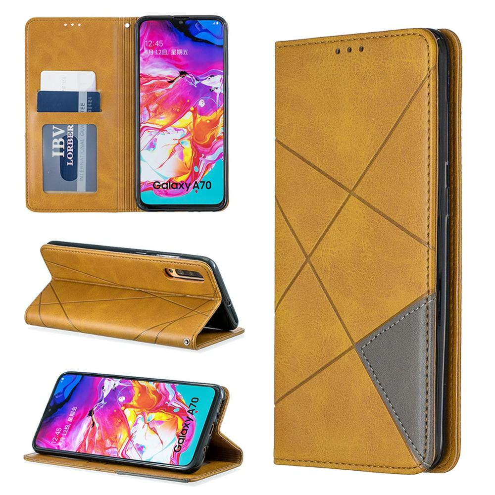 Samsung A70 PU+TPU Clamshell Phone Case Geometric Mosaic Pattern Retro Simple Solid Color Style Leather Phone Case for Samsung A70 Phone Case