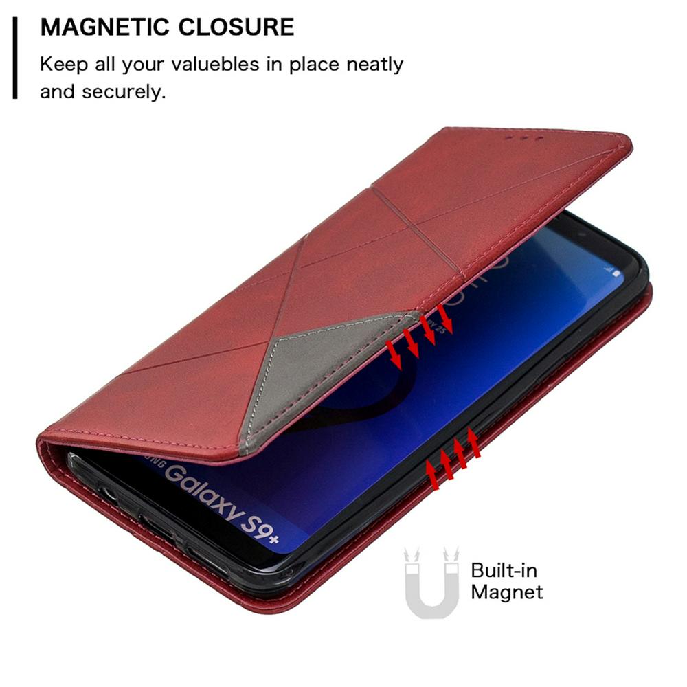 Samsung S9 PLUS PU+TPU Clamshell Phone Case Geometric Mosaic Pattern Retro Simple Solid Color Style Leather Phone Case for Samsung S9 PLUS Phone Case