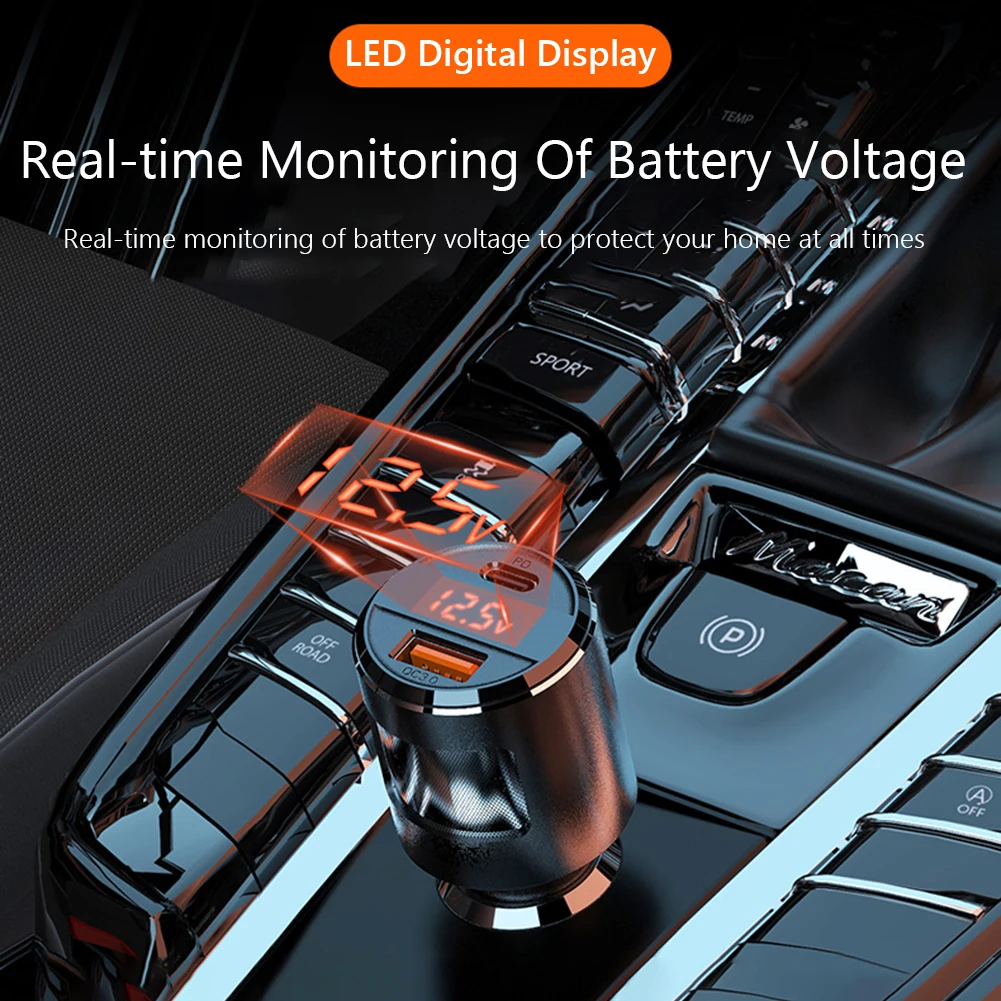 1. Plug the car charger into the cigarette lighter socket in the car. When the power in the car is turned on, the digital tube of the car charger lights up, indicating that the car charger is working normally.