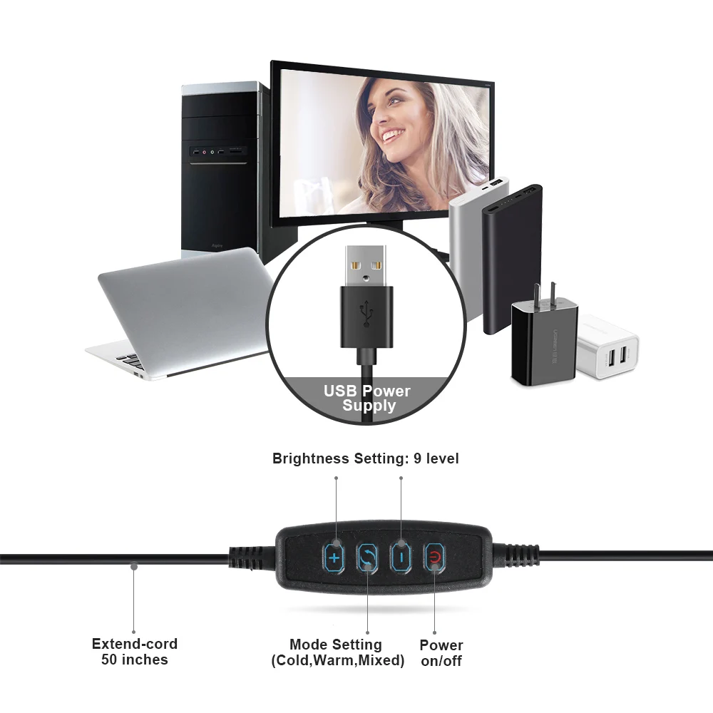 The led light design with 10 adjustable brightness meets all your needs in different circumstances. It will come in handy whenever you need extra light for making up, taking photos, making videos, reading books, and live streaming!