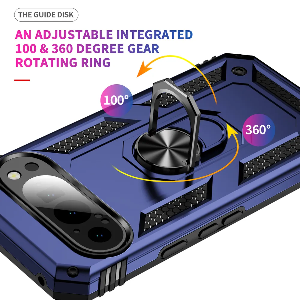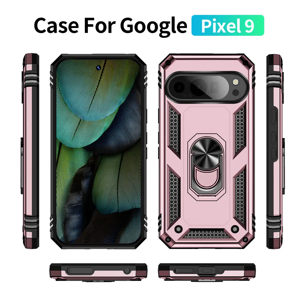 Sergeant Shockproof Drop-proof PC+TPU Phone Protective Case with Metal Ring Kickstand and Metal Patch for Google Pixel 9