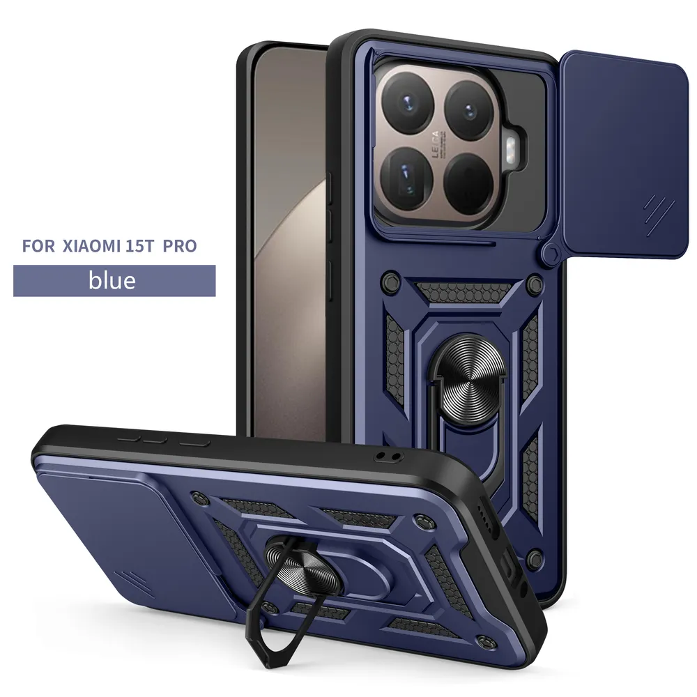Sergeant Shockproof Drop-proof PC+TPU Phone Protective Case with Metal Ring Kickstand and Metal Patch for Xiaomi 15T Pro