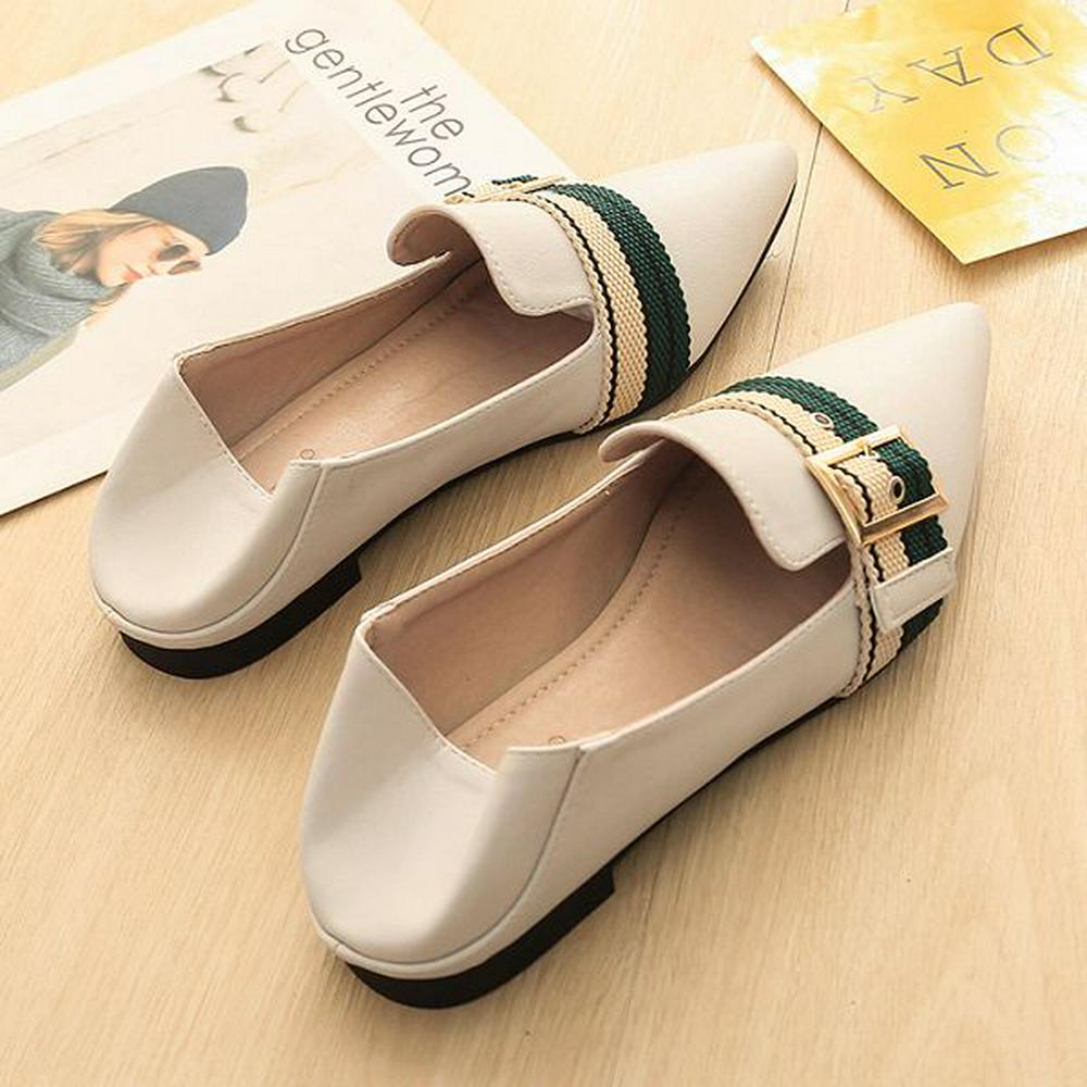 Sexy Pointed Belt Buckle Color Matching Casual Flat Shoes Pregnant Women Soft Bottom Shoes