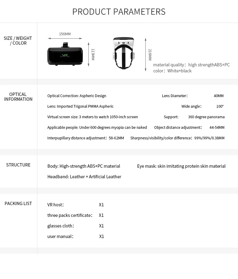 1 x VR Shinecon 3D Virtual Reality Glasses