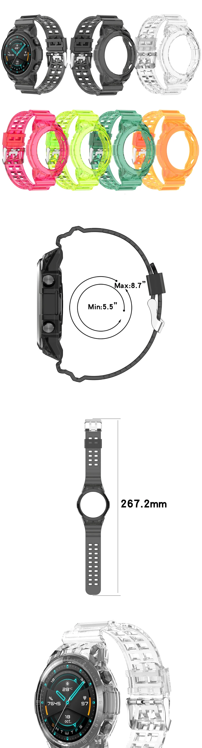 Silicone Bracelet For Huawei watch GT2 46MM Smart Watch Glacier Integrated Transparent Strap Wristband Replacement Accessories