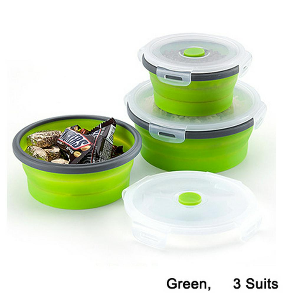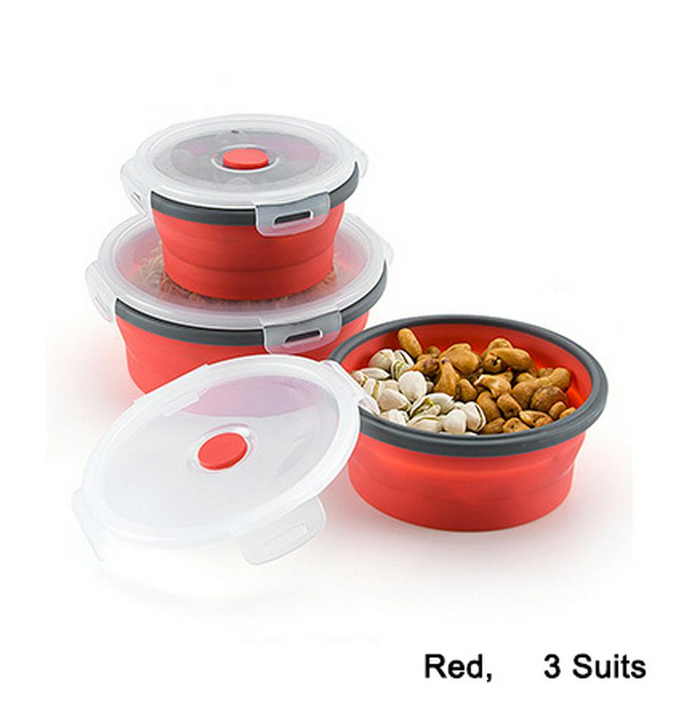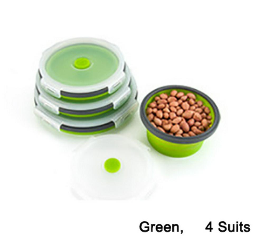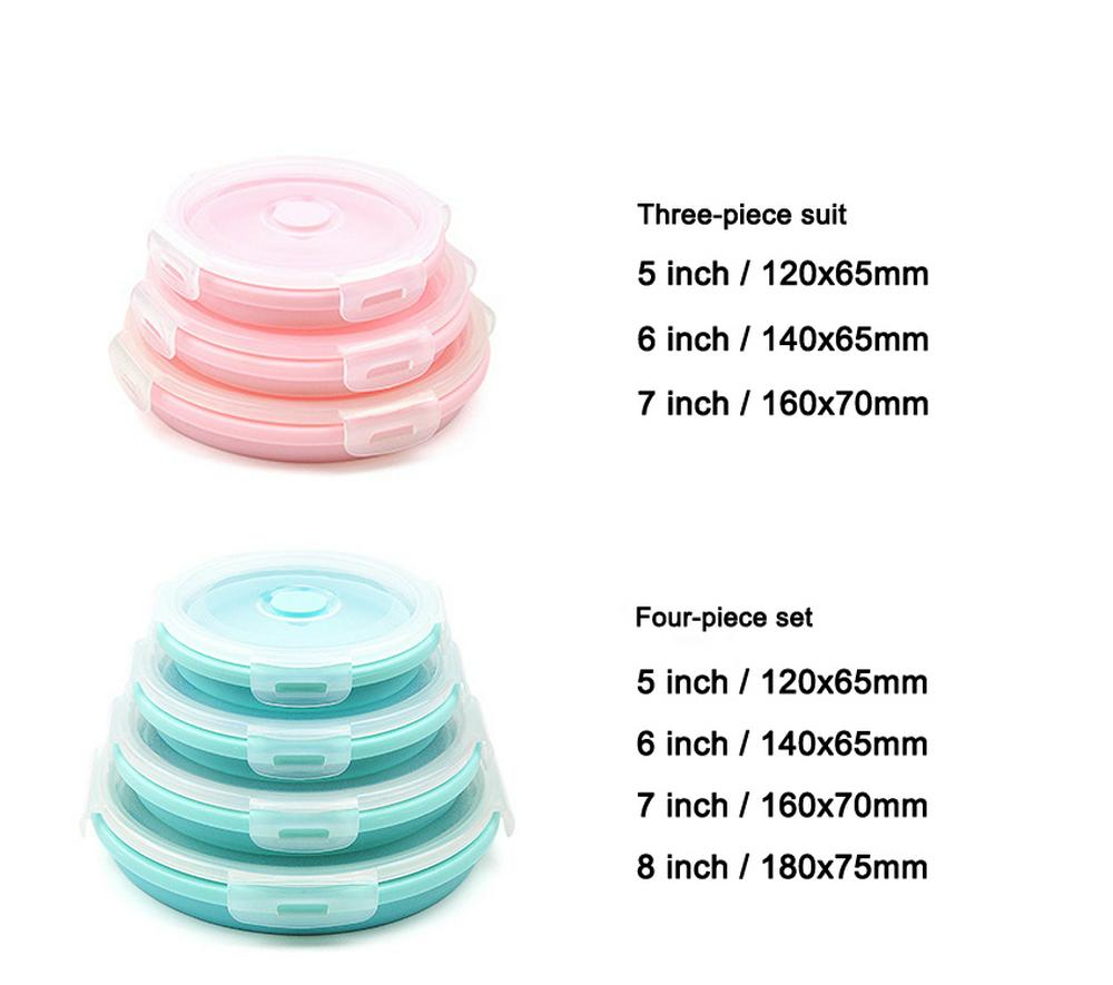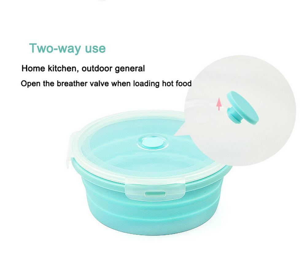 Silicone Lunch Containers Circular Folding Food Storage Boxes Microwave and Dishwasher Safe