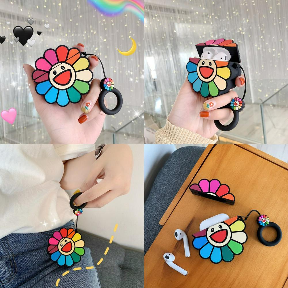 Silicone Sunflower Airpods 1/2 Case Keychain AirPod Earbud Charging Bluetooth Earphone Protective Cover Case