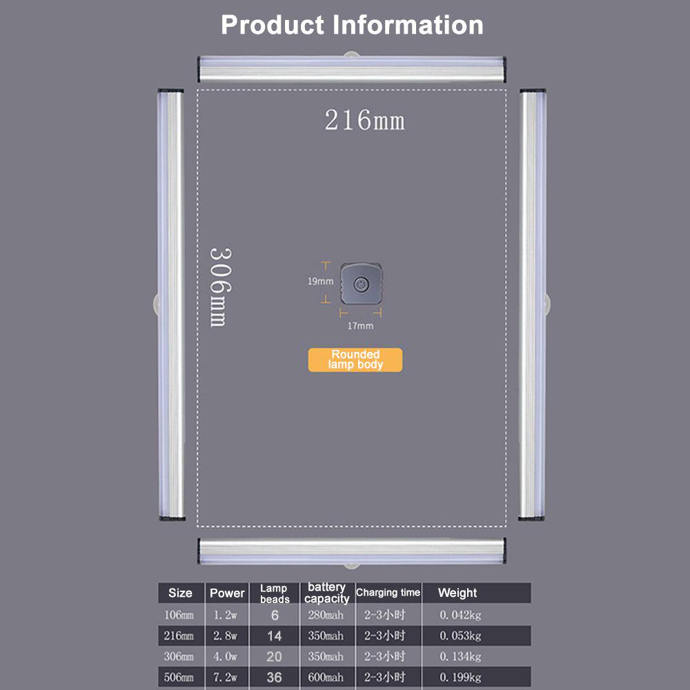 Slim Type LED Smart Long Strip Magnetic Suck Body Induction Light USB Charging Wardrobe Cabinet Lamp