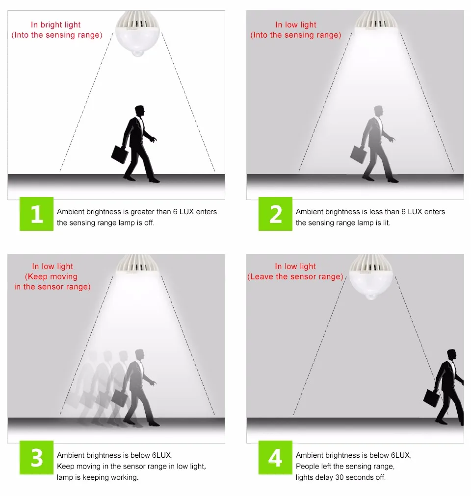 Work Principle:It will not light up in the day, only work in dark environment or at night