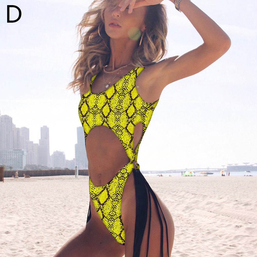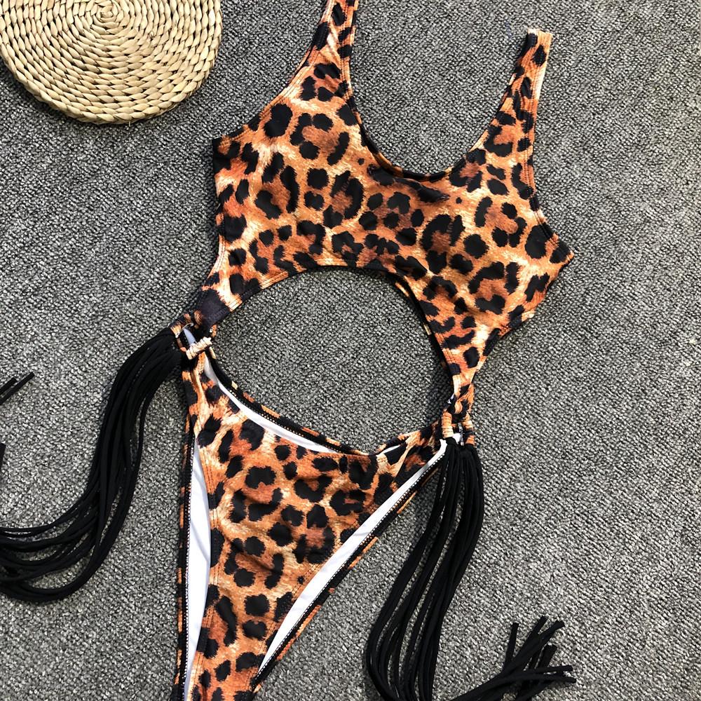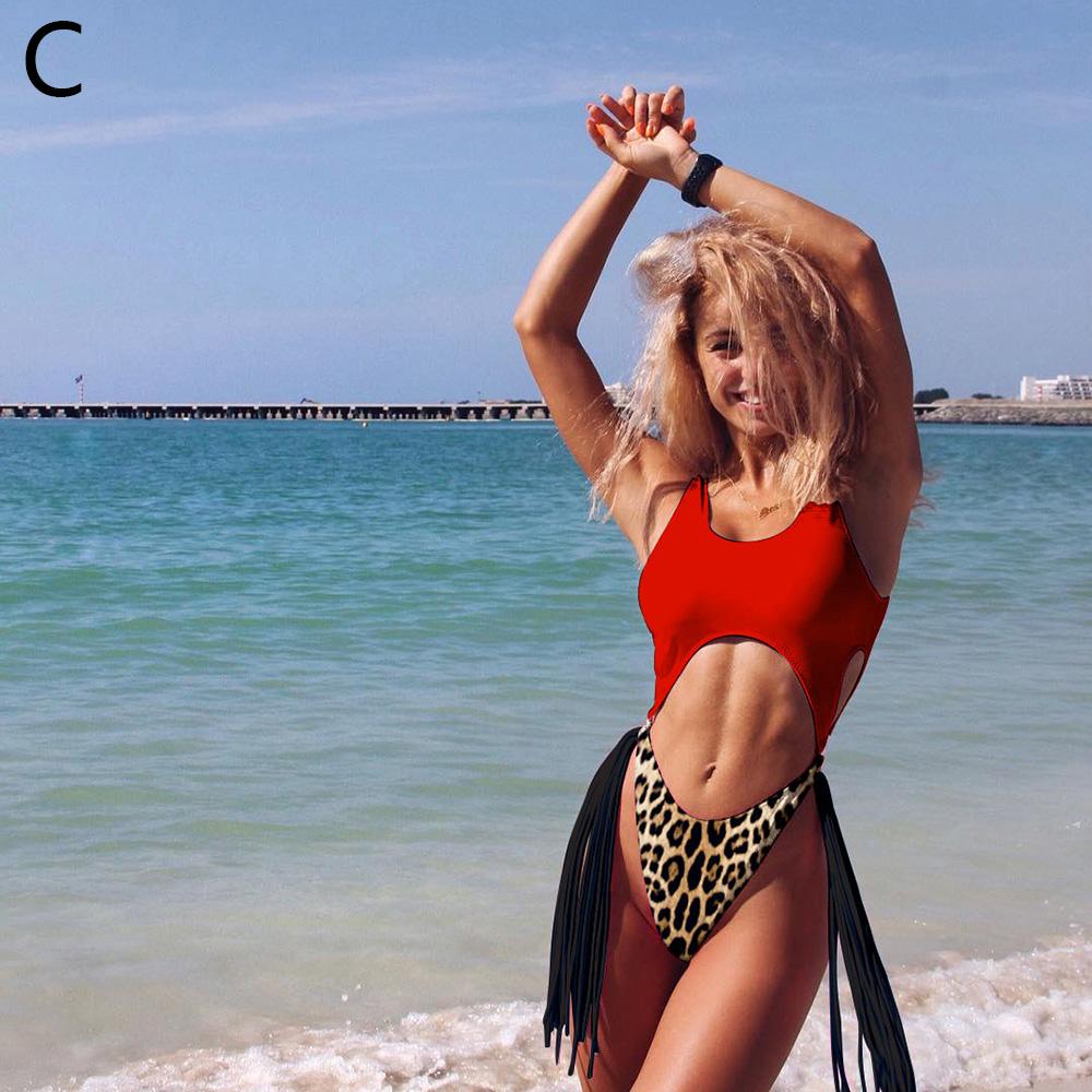 S/M/L Size Occident Woman Fashion Summer Sexy Hollow Steel Ring Tassel One-Piece Swimsuit for Holiday Hot Spring Beach